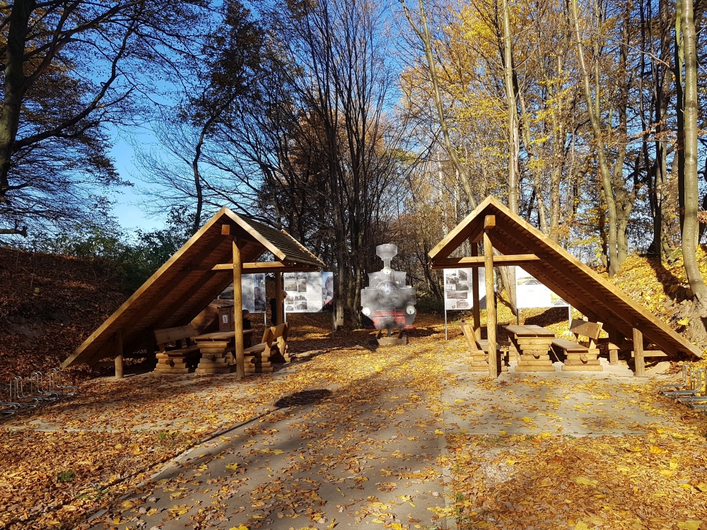 Dodatkową atrakcją, przy miejscu obsługi rowerzystów (MOR) są tablice informacyjne o historii miechowskiej wąskotorówki oraz lokomotywa wykonana na wzór tej, która niegdyś jeździła trasą Charsznica - Działoszyce. Kolejka powstała 1915 roku. Choć z biegiem lat była sukcesywnie likwidowana, a tory rozbierane, to przetrwała niemal do końca 1992 roku.