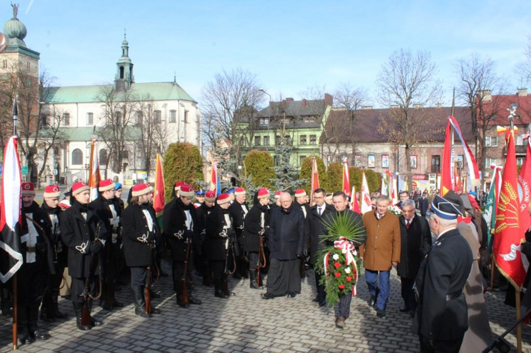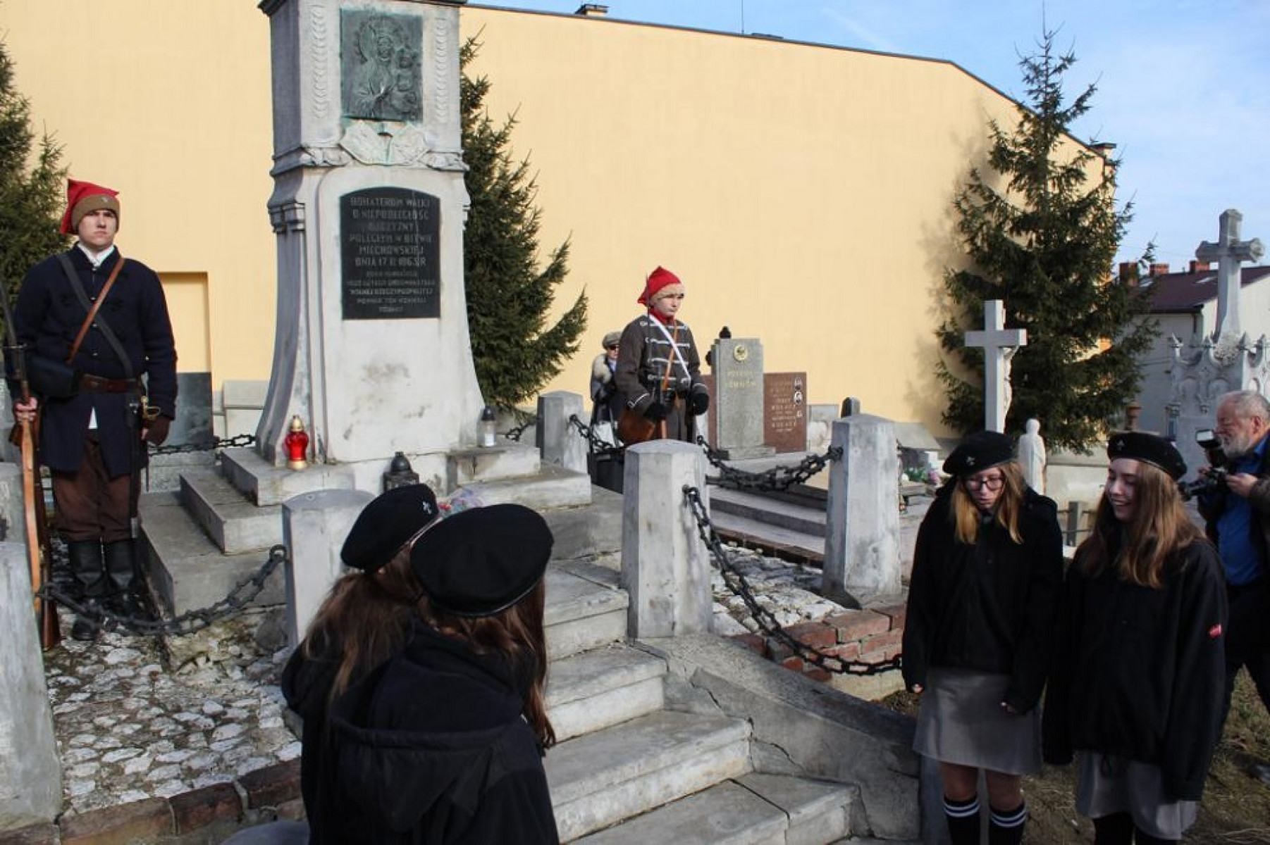 Przy pomniku z Orłem, dowódca grupy rekonstrukcyjnej „Żuawów Śmierci” z Buska Zdroju Robert Osiński odczytał apel poległych, w którym przypomniał nazwiska bohaterskich obrońców Miechowa, powstańców i mieszkańców miasta. Po oddaniu salwy honorowej, kwiaty złożyli samorządowcy, przedstawiciele zakładów pracy, szkół i kombatantów.