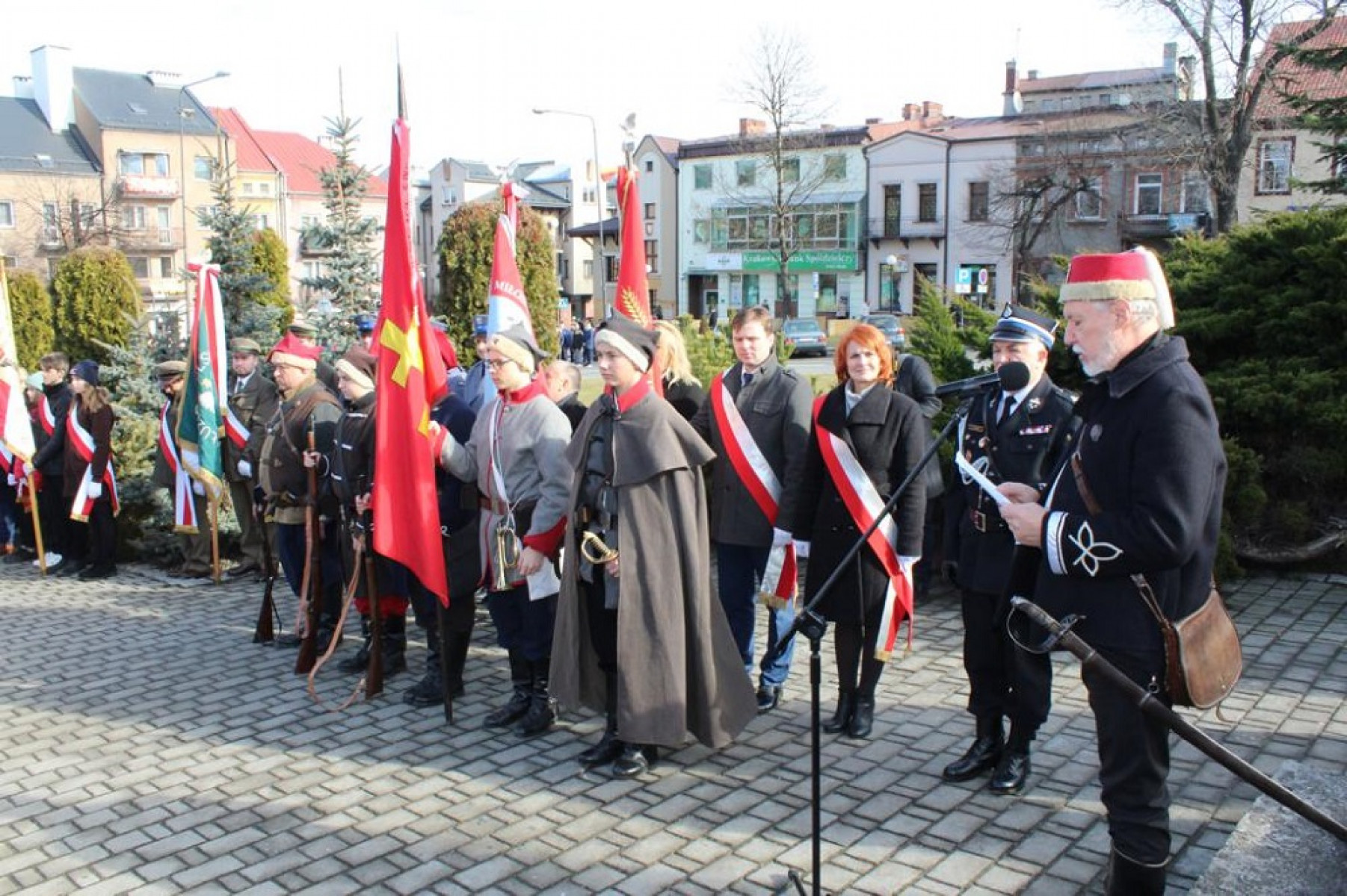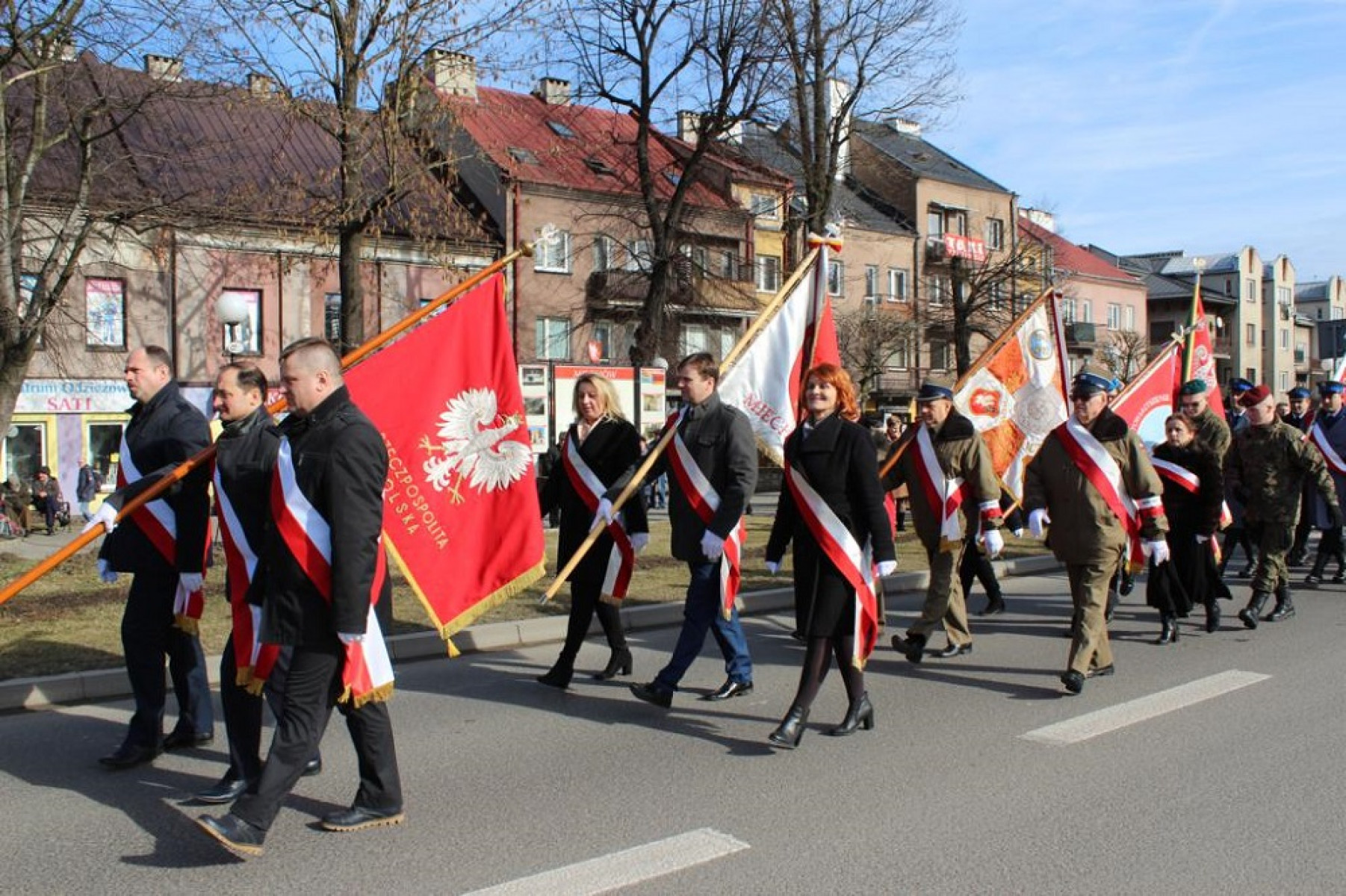 W hołdzie poległym, pod pomnikiem powstańców złożono kwiaty. Następnie kolumna pocztów sztandarowych, prowadzona przez Mirosława Grędę oraz Orkiestrę Dętą „Sygnał” przemaszerowała szlakiem powstańców - ulicą Józefa Piłsudskiego do Rynku.