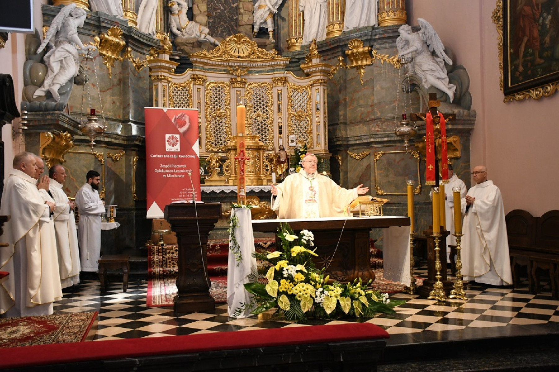 25-lat minęło od powołania w Miechowie Zespołu Placówek Opiekuńczo-Leczniczych Caritas Kieleckiej. Obchody jubileuszowe odbyły się 27 kwietnia. Uroczystości z udziałem m.in. władz Powiatu Miechowskiego, rozpoczęła Msza św. dziękczynna w Bazylice Grobu Bożego pod przewodnictwem ks. biskupa Andrzeja Kalety, w koncelebrze m.in. z dyr. Caritas Kielce - ks. dr Stanisławem Słowikiem, ks. proboszczem Franciszkiem Siarkiem oraz kapelanami placówek obchodzących święto.