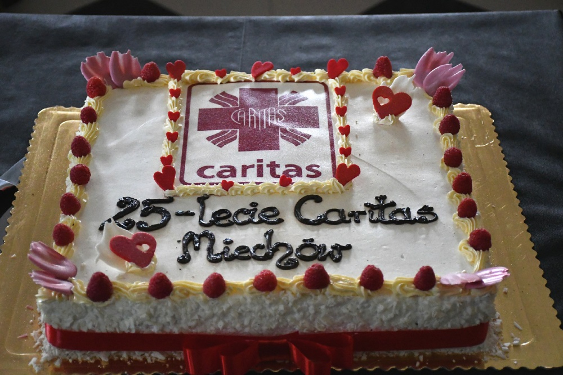 Okolicznościowy tort na 25-lecie placówek Caritas w Miechowie