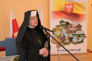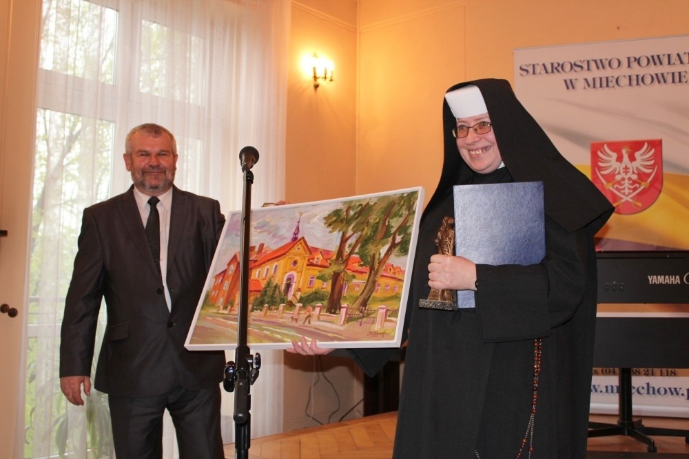 (...) Nawiązując do wiekopomnego wydarzenia starosta Marian Gamrat przypomniał, że "zapisy historycznego dokumentu nie burzyły ówczesnego porządku społecznego, ale mądrze go modyfikowały, z korzyścią dla wszystkich ówczesnych stanów". - Myśląc o tamtej konstytucji pamiętajmy także o obecnych czasach, aktualnych wyzwaniach i potrzebach, o naszych lokalnych tradycjach i wartościach, które stanowią kontynuację idei słynnej ustawy - radził starosta. Tradycyjnie w tym dniu starosta wręczył nagrodę ,,Przyjaciela Powiatu" za zasługi na rzecz lokalnej społeczności. Tym razem statuetkę w kształcie wieży bazyliki Grobu Bożego otrzymała siostra Kinga - Grażyna Mrozek, kierowniczka Hospicjum im. bł. Bernardyny Jabłońskiej w Miechowie, która została siódmym laureatem tego wyróżnienia. W uzasadnieniu podano, że nagroda jest uznaniem za wieloletnie i skuteczne wysiłki siostry Kingi, która przy pomocy profesjonalnej kadry umożliwia osobom zmagającym się z ciężkimi, nieuleczalnymi chorobami i cierpieniem, godne przeżycie kresu życia. Laureatka, obdarowana dodatkowo obrazem z wyobrażeniem miechowskiego hospicjum przyznała, że praca, którą prowadzi od wielu lat z oddanym sprawie zespołem pracowników to walka o to, by chory do końca żył godnie, nie bał się cierpienia i umierania. Wczorajszą uroczystość w starostwie zakończył występ fortepianowy Antoniego Kaweckiego, 10 letniego ucznia Państwowej Szkoły Muzycznej I stopnia w Miechowie, zdobywcy wielu nagród i wyróżnień. Przed południem w miechowskiej bazylice odbyła się msza św. w intencji ojczyzny. Koncelebrowali ją księża: Andrzej Boksiński, Stanisław Latosiński i Zbigniew Grzesiński. Następnie delegacje samorządów, zakładów pracy, organizacji kombatanckich, harcerskich, pozarządowych i młodzieży, przy akompaniamencie miechowskiej orkiestry dętej "Sygnał" złożyły kwiaty pod pomnikiem z Orłem.