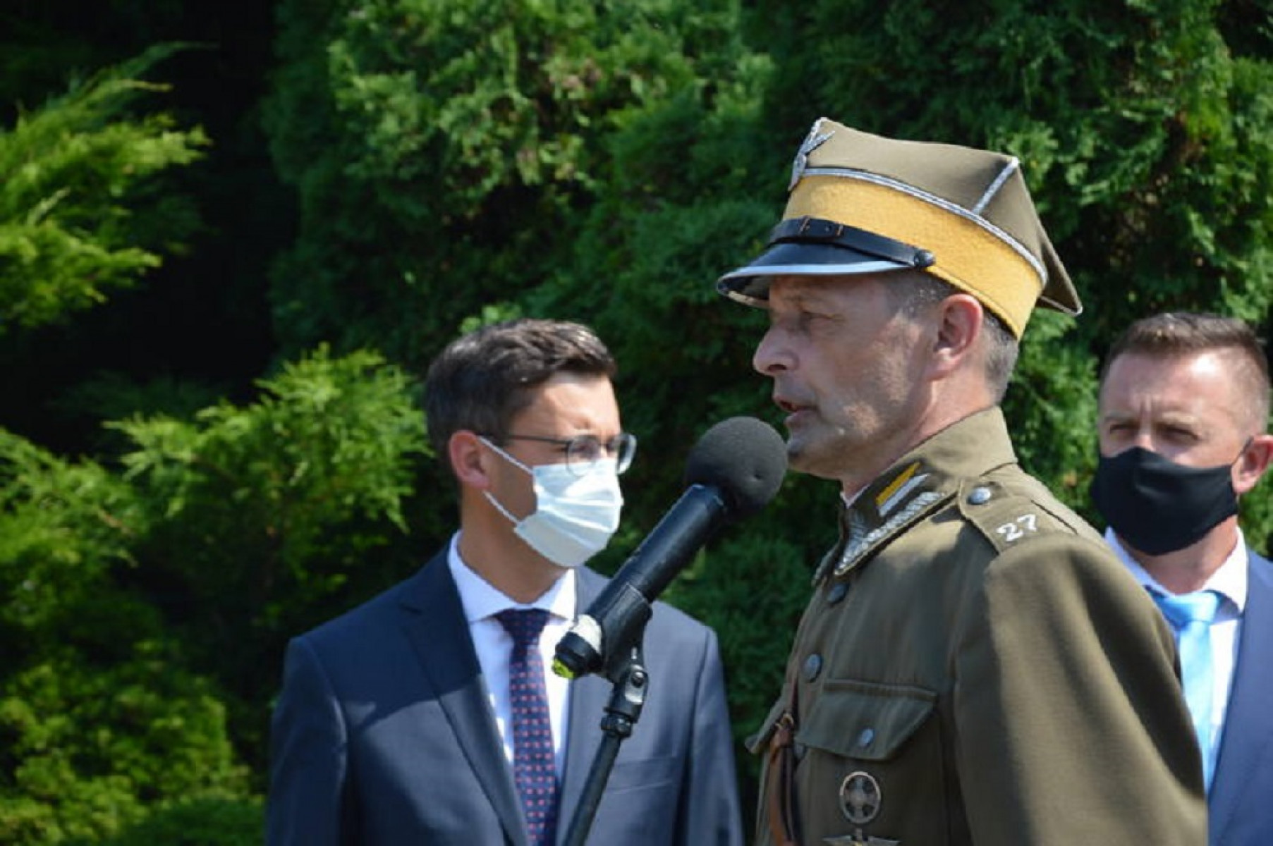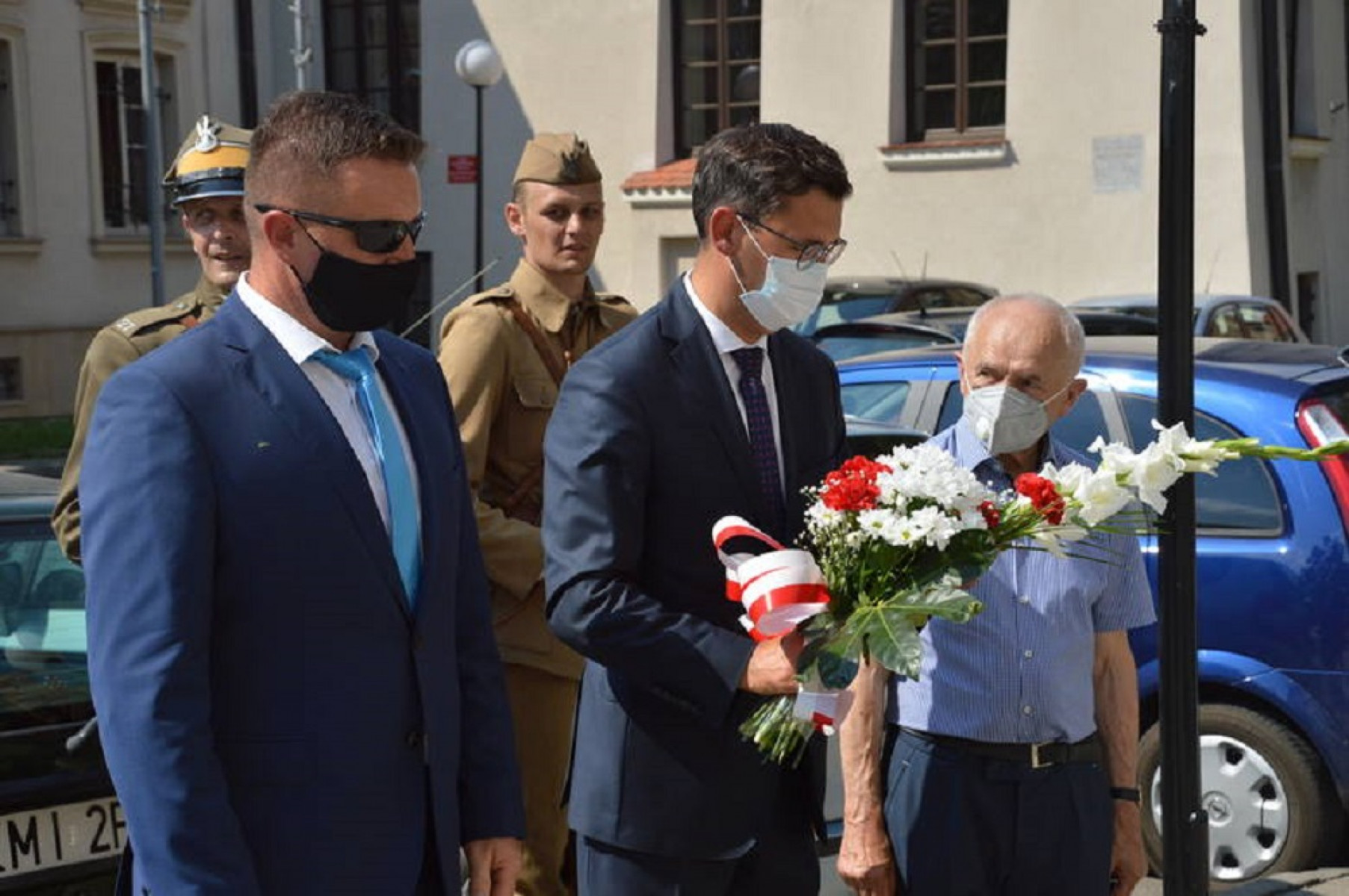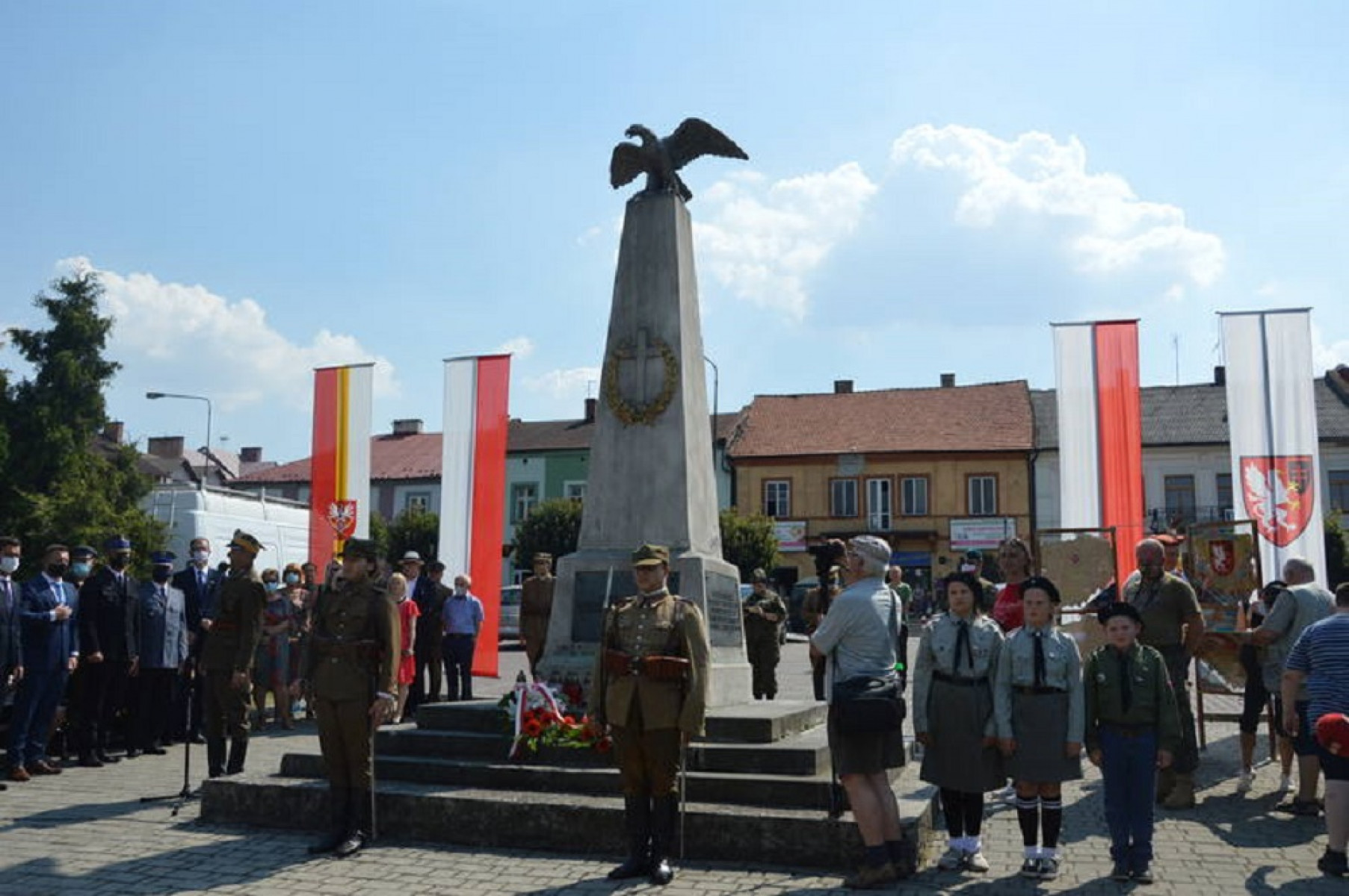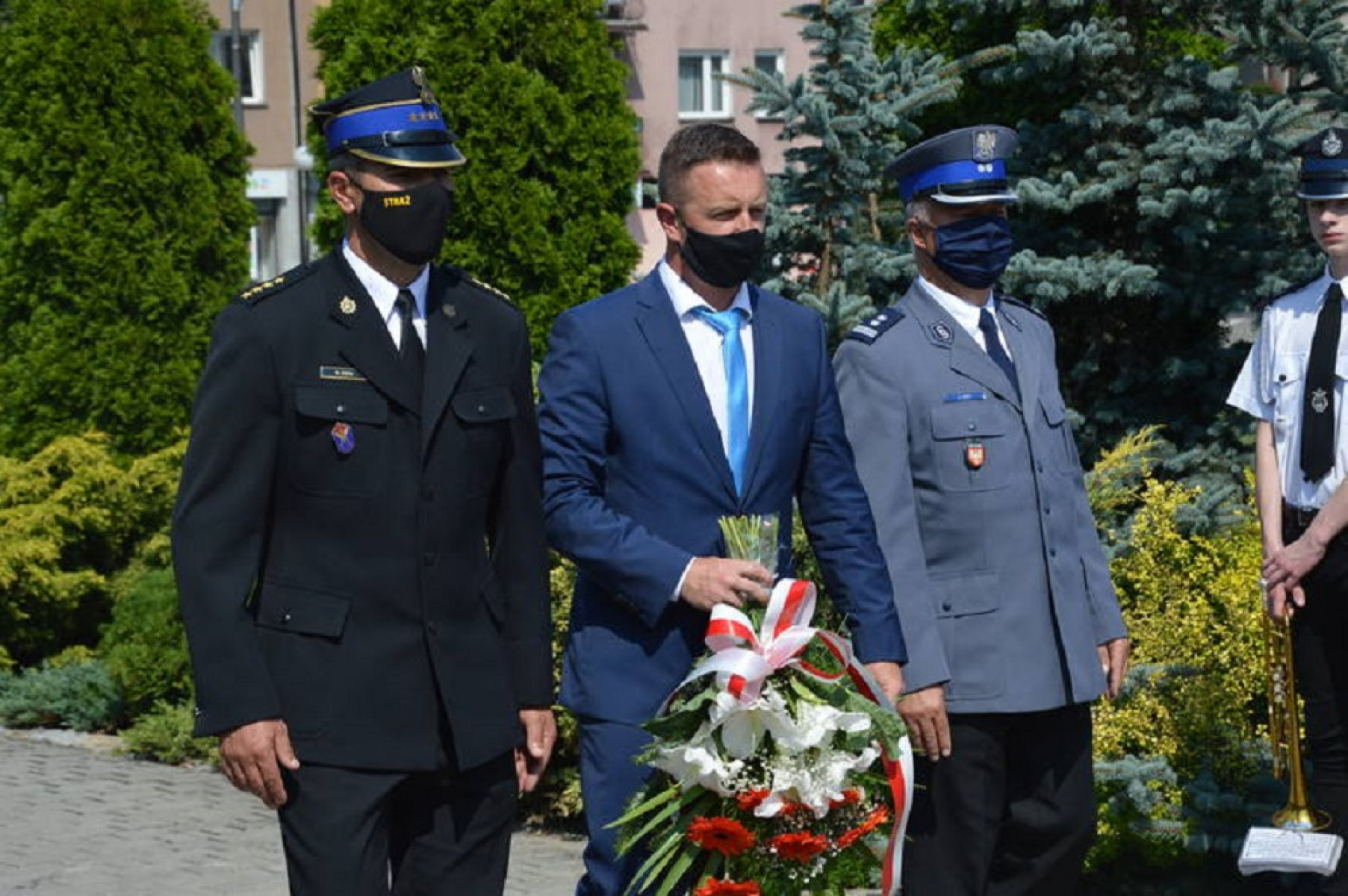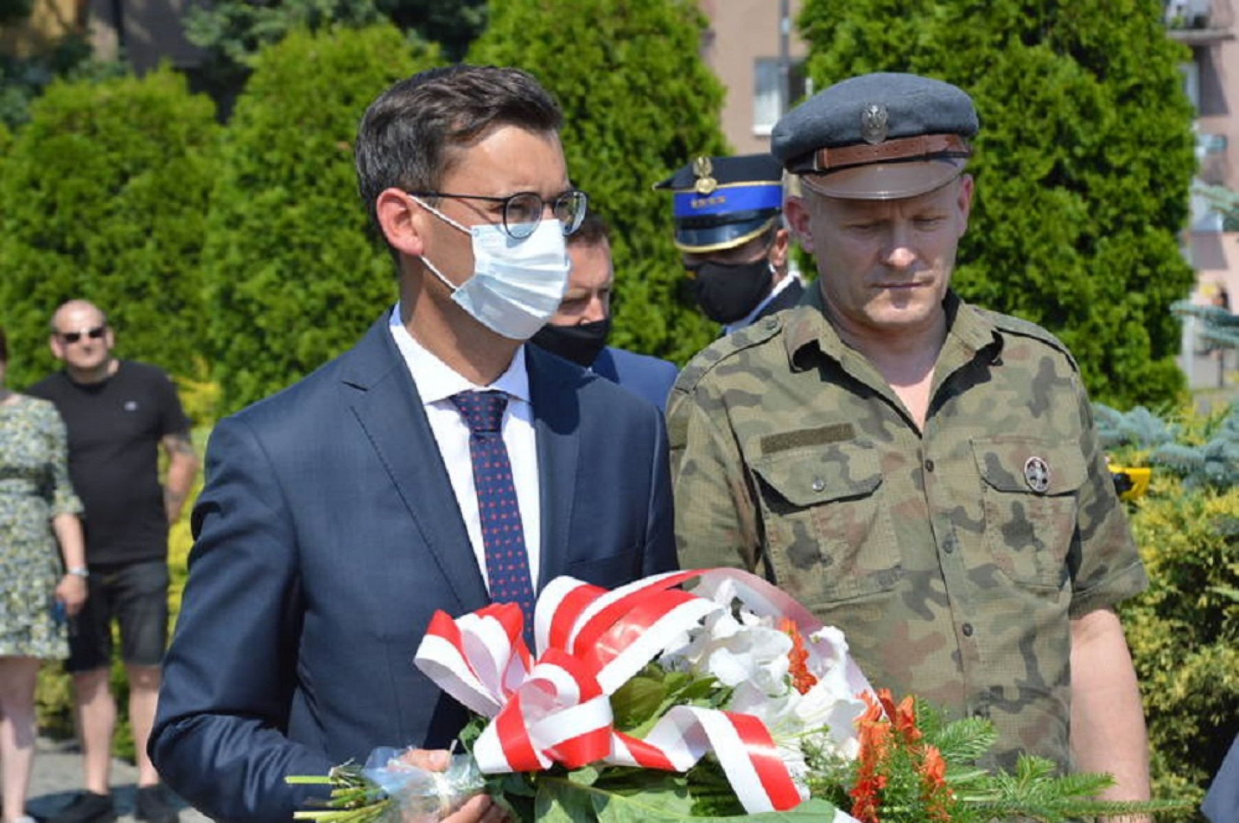 Burmistrz Dariusz Marczewski składa hołd pod Pomnikiem z Orłem