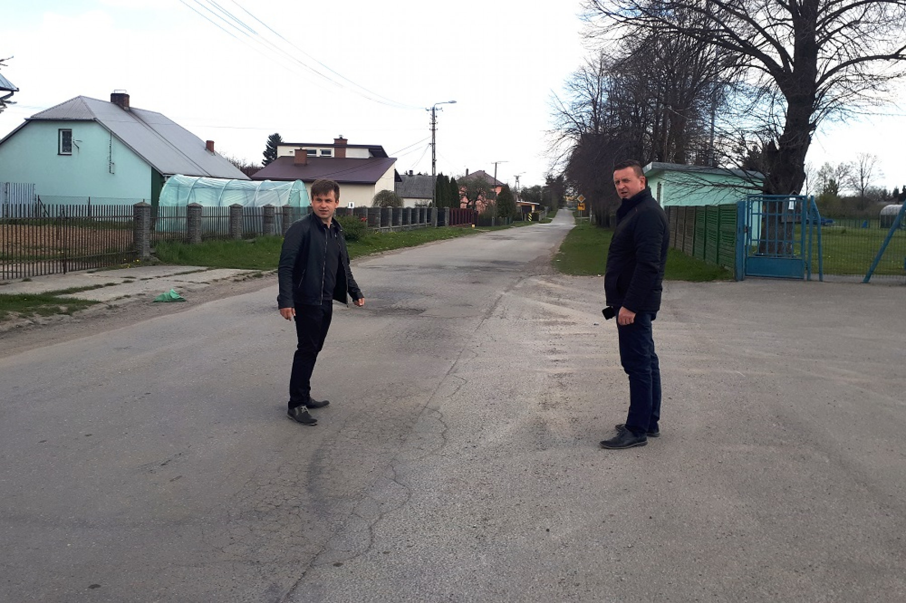 Wicestarosta Paweł Osikowski i Dariusz Sokół, radny gminy Charsznica na ul. Sportowej