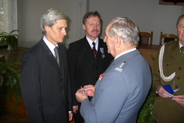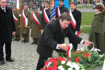 (...) Uczestnicy święta - samorządowcy, delegacje zakładów pracy, organizacji kombatanckich, harcerzy i młodzieży szkolnej - poprzedzani orkiestrą dęta i pocztami sztandarowymi przedefilowali wokół rynku, by złożyć kwiaty pod Pomnikiem z Orłem, upamiętniającym m.in. bohaterów I wojny światowej i walk o wolność. Okolicznościowe spotkanie odbyło się w Urzędzie Gminy i Miasta w Miechowie. Burmistrz Krzysztof Świerczek przypomniał historyczne fakty  związane z walką o wolność w latach 1914 - 1918 r. Z okazji Święta Niepodległości prezes Zarządu Wojewódzkiego Związku Kombatantów RP i b. Więźniów Politycznych płk Julian Zięba i prezes miechowskiego Zarządu Koła mjr Józef Jarno wyróżnili starostę Mieczysława Bertka i rzecznika prasowego powiatu Ryszarda Nasadę odznaką za zasługi na rzecz ww. organizacji. Listopadową uroczystość zakończył występ zespołu wokalno-muzycznego z Miechowskiego Domu Kultury.