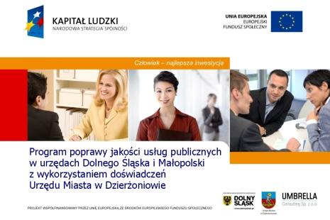 (...) standaryzowana ankieta stanowiła istotny element projektu pn. ,,Program doskonalenia jakości usług publicznych w Urzędach Dolnego Śląska i Małopolski z wykorzystaniem doświadczeń Urzędu Miasta w Dzierżoniowie”. Przystąpiło do niego także Starostwo Powiatowe w Miechowie w ramach Programu Operacyjnego Kapitał Ludzki – Działanie 5.2 ,,Wzmocnienie potencjału administracji samorządowej” Priorytet 5 ,,Dobre rządzenie”. W projekcie uczestniczy 25 urzędów administracji terenowej różnego szczebla, zaś starostwo miechowskie jest jedynym urzędem powiatowym reprezentującym województwo małopolskie. Ankieta, o której wypełnienie proszeni byli klienci w dwóch budynkach starostwa przy ul. Racławickiej 12 i Sienkiewicza 27, umożliwiła zapoznanie się z opiniami klientów nt. jakości pracy starostwa.