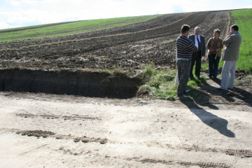 W ramach objazdu wykonanych prac starosta Marian Gamrat spotkał się w Słupowie z wójtem Gminy Słaboszów Zbigniewem Kitą, sołtysem Teresą Nowak, radnym gminy Łukaszem Nowakiem i inż. Krzysztofem Szarkiem z ZDP w Miechowie, by wspólnie zobaczyć efekty niedawno wykonanych prac. W tej miejscowości przy zaangażowaniu wójta i pomocy mieszkańców, którzy użyczyli swoje pojazdy do odwozu ziemi dokonano renowacji rowów na dług. prawie 2 km. Jednocześnie uporządkowano przydrożne pobocza usuwając zbędną ziemię i krzaki ograniczające widoczność na dług. ponad 4 km.