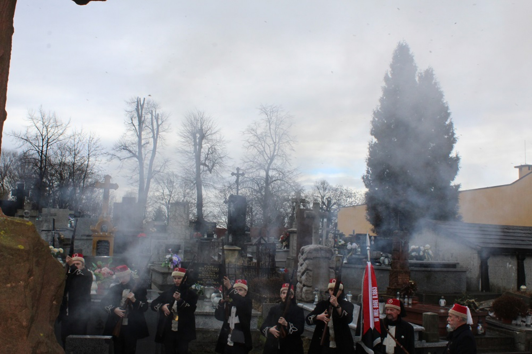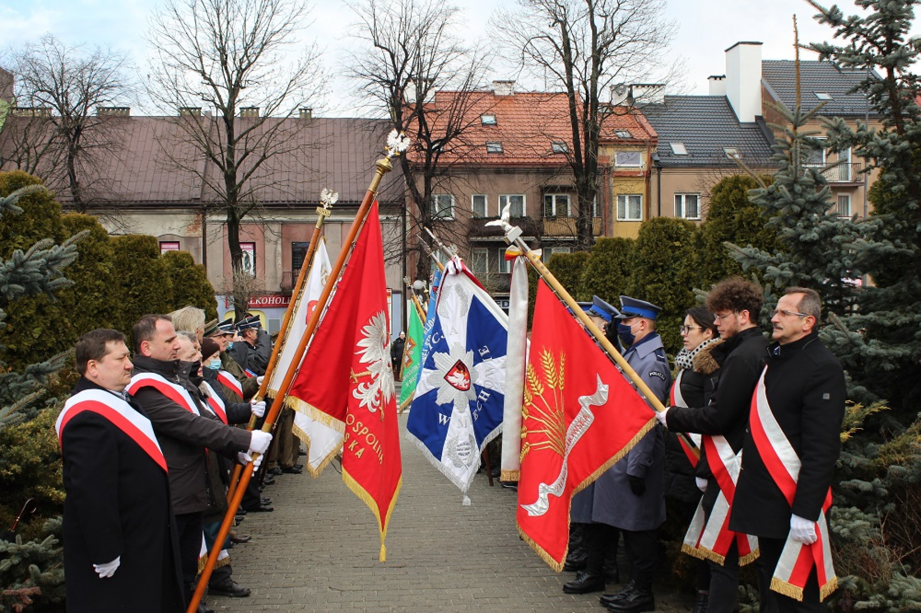 W obchodach rocznicowych uczestniczyła Ewa Gil - II Zastępca Dyrektora Biura Wojewody Małopolskiego, która odczytała okolicznościowy list przekazany przez Wojewodę - Łukasza Kmitę. Obecni byli przedstawiciele lokalnych samorządów: Starosta Powiatu Miechowskiego - Jacek Kobyłka, Przewodniczący Rady Powiatu - Krzysztof Świerczek, Burmistrz Gminy i Miasta Miechów - Dariusz Marczewski, Przewodniczący Rady Miejskiej w Miechowie - Zenon Czekaj, przedstawiciele służb mundurowych: Komendant Powiatowy Policji - Andrzej Kot, Komendant Powiatowy Straży Pożarnej - Michał Majda oraz Marcin Chorązki reprezentujący Instytut Pamięci Narodowej w Krakowie i Anna Bałazińska - kierownik agendy zamiejscowej Urzędu Marszałkowskiego Województwa Małopolskiego.