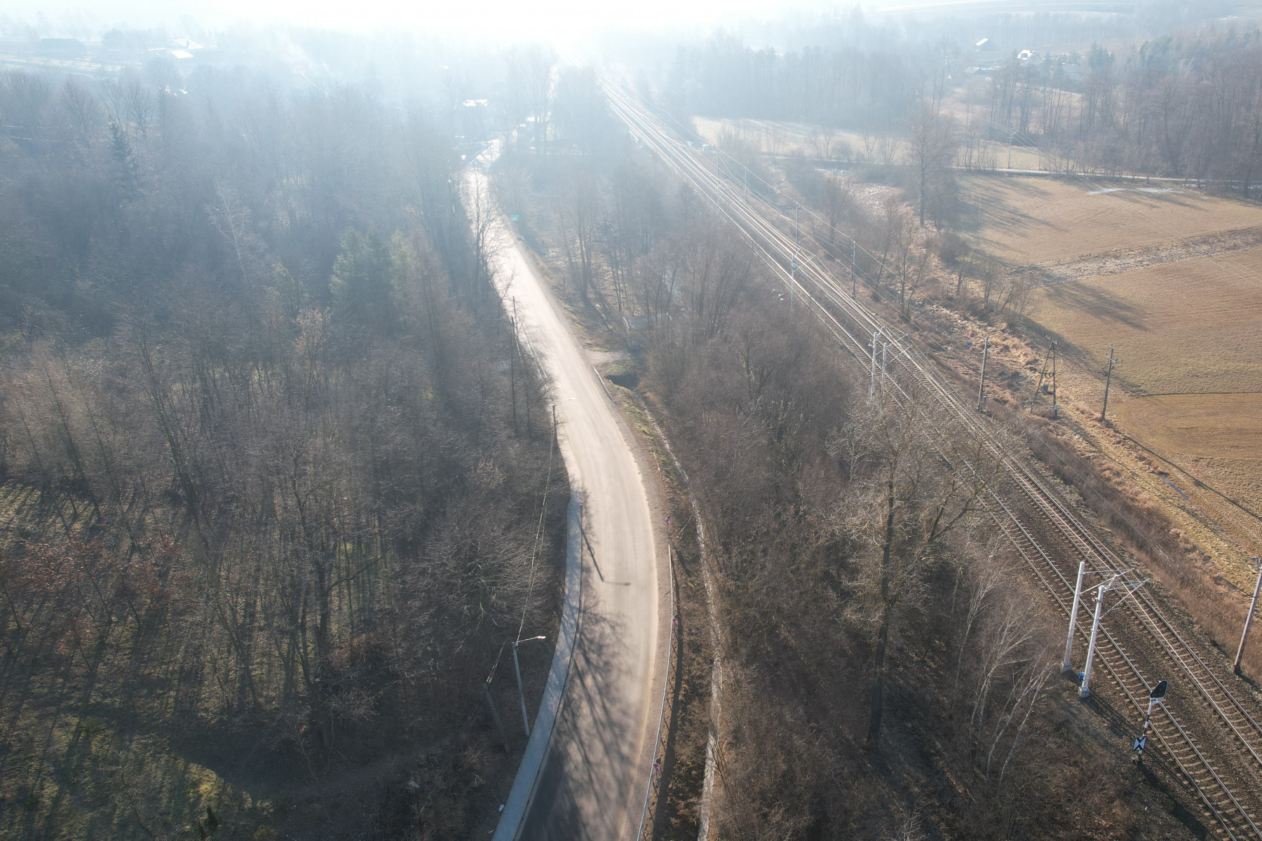 Droga powiatowa Jaksice - Kamieńczyce - Komorów - widok z drona