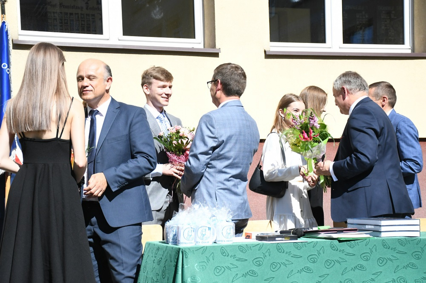 - Zakończenie roku szkolnego to zawsze podniosła chwila i czas radości, nie tylko z powodu wakacji, ale z racji refleksji i podsumowania wysiłku, który cała społeczność szkolna czyniła po to, aby uzyskać jak najlepsze efekty - mówił Krzysztof Świerczek, Przewodniczący Rady Powiatu Miechowskiego. Przypomniał, iż żegnamy kolejny specyficzny i trudny rok z racji pandemii, zakłócającej rytmiczny proces edukacji. Na ręce dyrektora, grona pedagogicznego i administracji LO, w imieniu swoim oraz organu prowadzącego - Samorządu Powiatu Miechowskiego, złożył podziękowania za wytężoną pracę, wyrażając przy tym nadzieję, iż pożegnaliśmy na stałe pandemiczny czas. Na czas wakacji Przewodniczący życzył wszystkim dobrego, słonecznego wypoczynku, dużo radości i wrażeń oraz nabierania zapału do powrotu do szkolnych murów.