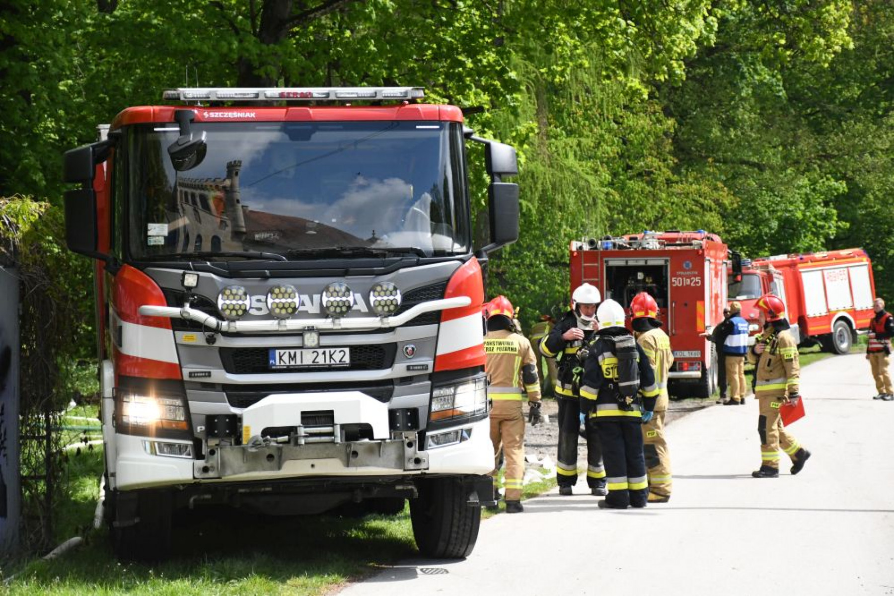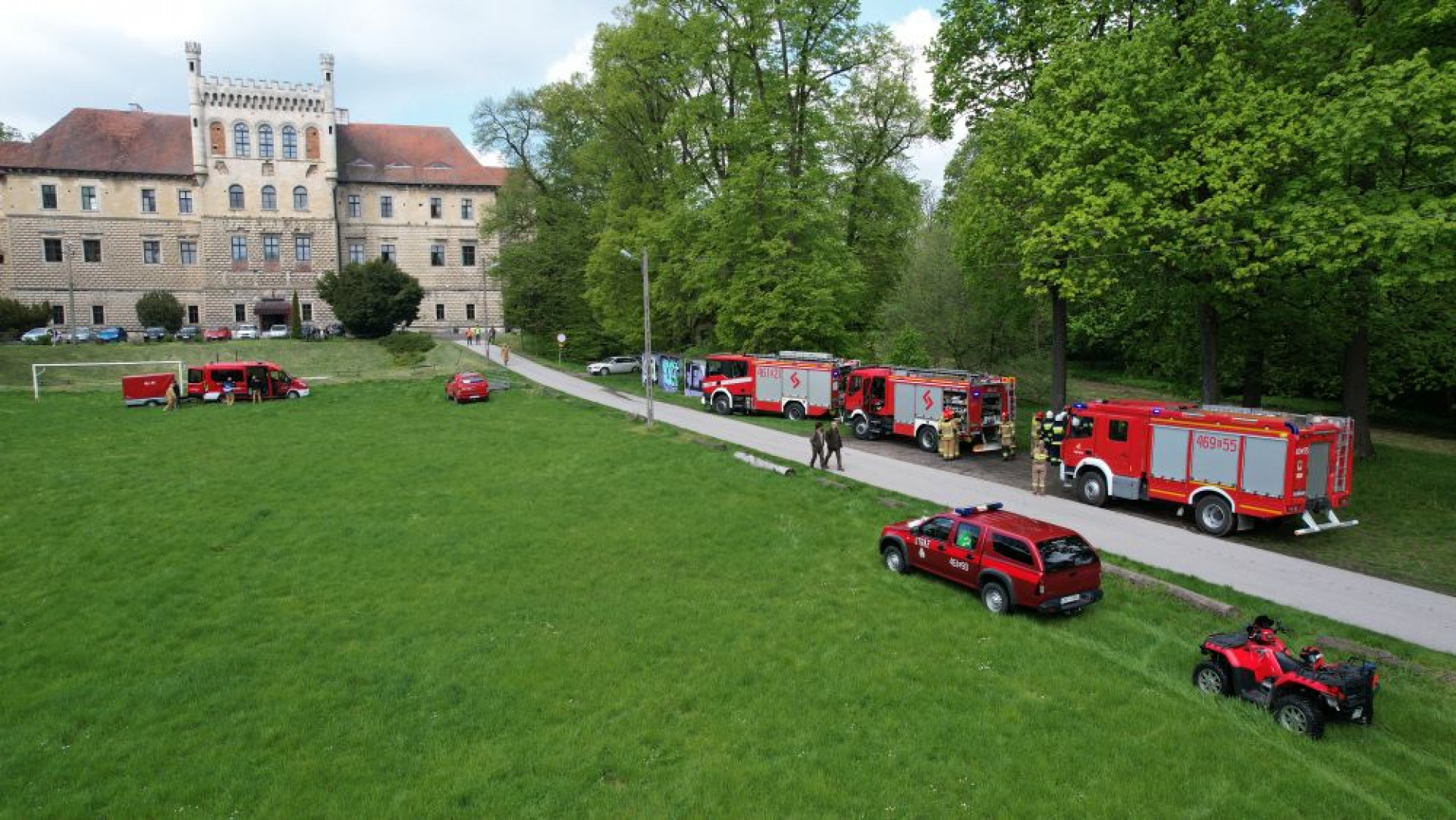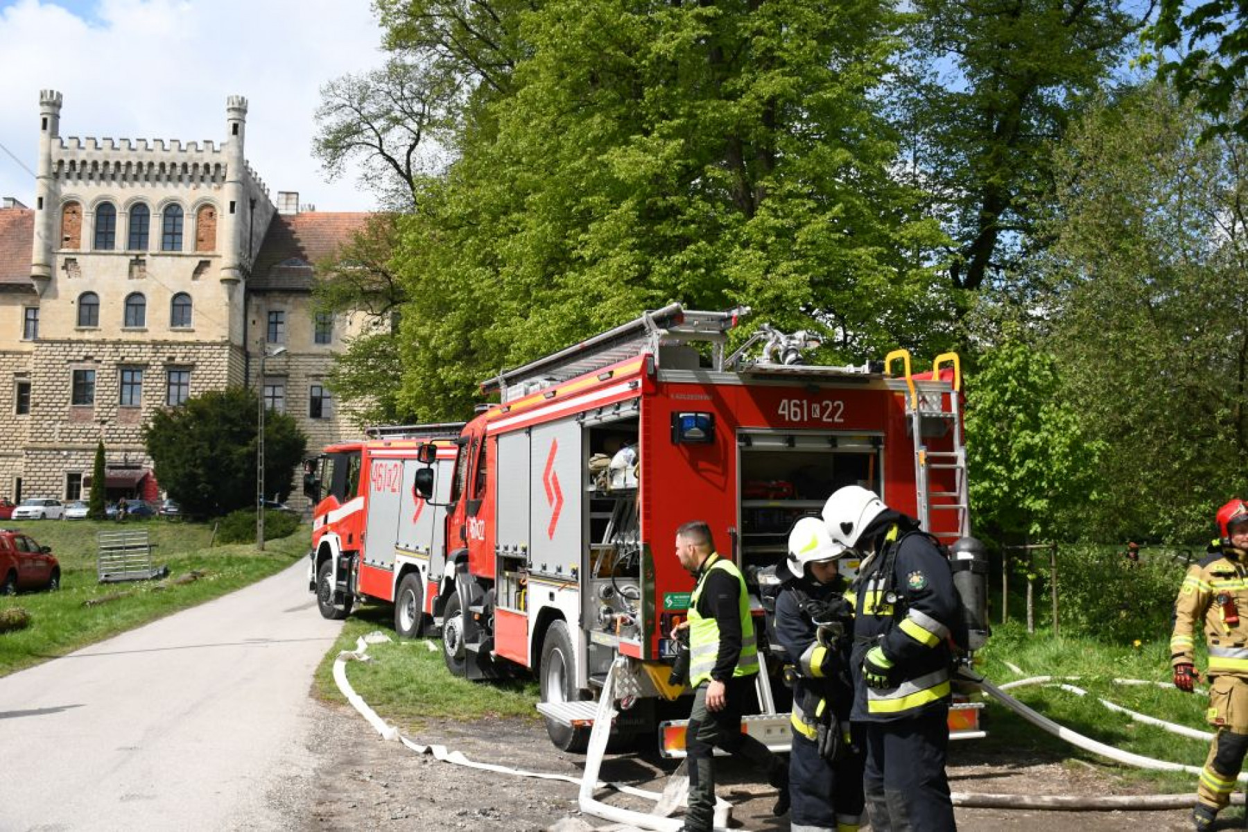 Strażacy pod Pałacem na Mirowie w Książu Wielkim