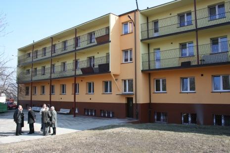 (...) która wykonano w 2009r. w ramach II etapu dwuletniego projektu pn. ,,Termomodernizacja budynków użyteczności publicznej będących własnością powiatu miechowskiego". Zakres pracy obejmował m.in. ocieplenie ścian zewnętrznych styropianem, położenie tynku akrylowego oraz wymianę instalacji odgromowej, rynien, opasek przy budynkach i wykonanie obróbek blacharskich. Całkowita wartość tej inwestycji wyniosła 240.000 zł, a złożyły się na nią środki z NFOŚiGW (72.000 zł), WFOŚiGW (164.700 zł) i PFOŚiGW (3.300 zł). Jak zauważył starosta Mieczysław Bertek, przed dziesięciu laty budynek przypominał czasy ,,głębokiego socjalizmu", a jego strona techniczna i użytkowa budziła wiele zastrzeżeń. Po przejęciu placówki przez powiat, systematycznie unowocześniano jej stan, wykonując w międzyczasie nowe pokrycie dachowe, wymieniając stolarkę okienną i drzwiową, dobudowując windę dla pensjonariuszy, doposażając budynek, remontując łazienki. Termomodernizacja była ostatnim etapem metamorfozy DPS przy ul. Warszawskiej, w której obecnie przebywa 90 pensjonariuszy - mężczyzn niepełnosprawnych intelektualnie (docelowo zgodnie z wymogami metrażowymi będzie 88 mieszkańców). W ocenie wicestarosty Stanisława Pietrzyka w obecnej kadencji powiat zainwestował w powyższą nieruchomość ok. 1,5 mln zł. Dyrektor DPS Małgorzata Stachnik - Skóra poinformowała, że pomieszczenia dla pensjonariuszy dostosowane są do niezbędnych norm, profesjonalna opieka opiekuńcza i medyczna jest zapewniona, a przed dyrekcją i pracownikami jeszcze jeden wysiłek - malowanie korytarzy, uzupełnienie umeblowania, drobne naprawy. To wszystko po to, aby w najbliższych miesiącach placówka spełniła wymogi unijne i uzyskała oczekiwane standardy, bez których nie mogłaby funkcjonować. W trakcie spotkania poruszono także kwestie kosztów miesięcznego utrzymania pensjonariuszy i relacji finansowych w tym względzie na linii: pensjonariusz-województwo-samorządy lokalne. Kierownictwo powiatu i dziennikarze mieli także okazję zapoznać się z wnętrzem DPS-u, by przekonać się, że uzyskanie standardów to kwestia najbliższego czasu.