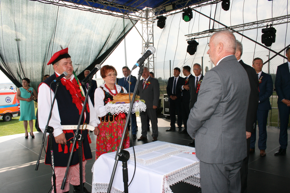 Starosta Marian Gamrat zwrócił się do rolników z tradycyjnym wystąpieniem: „Doceniam Wasz wysiłek i tutaj w Kozłowie dziękuję Wam, Rolnicy Powiatu Miechowskiego i wszystkim osobom związanym w jakikolwiek sposób z pracą na roli, za efektywną pracę i wysiłek, a przede wszystkim za Waszą pracowitość, która została poddana próbie przed żniwami i w czasie zbiorów. Dziękuję także za przywiązanie do ziemi, do tradycji, do polskości i religii, czyli do tych wartości, które jako rolnicy kultywujemy od niepamiętnych czasów i z których jesteśmy dumni. Dziękuję za wyrzeczenia i uzyskane plony i życzę sił i zdrowia na dalsze lata życia i pracy”.