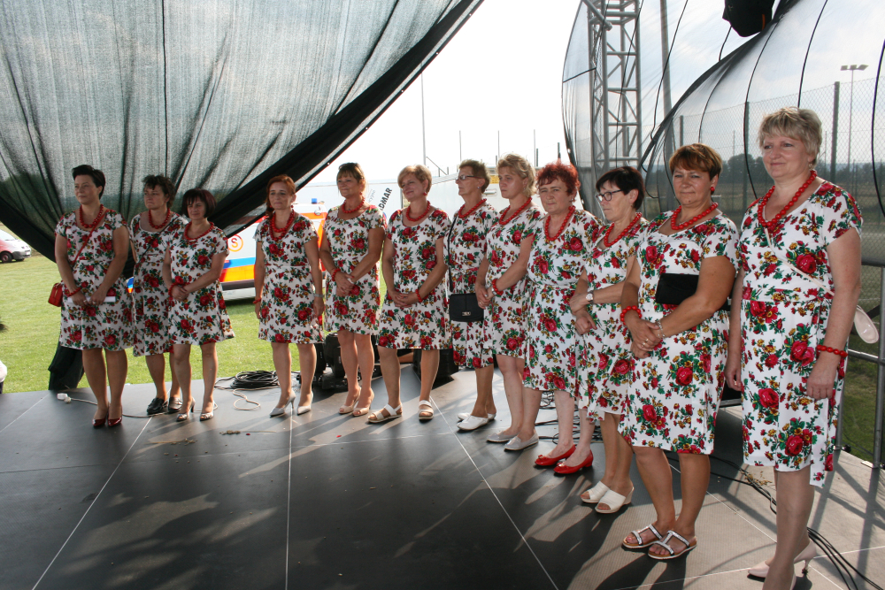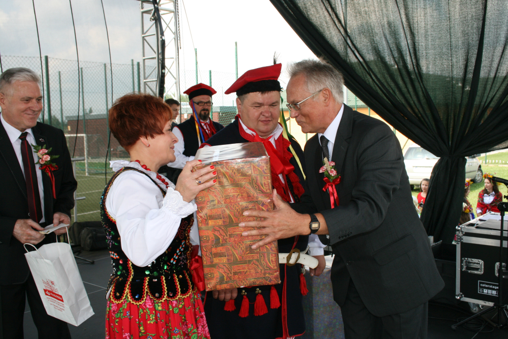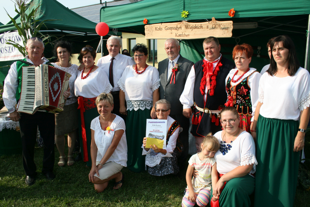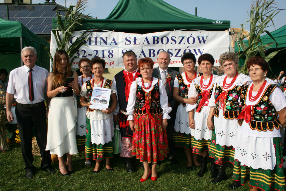 Starostowie dożynkowi otrzymali okolicznościowe upominki ufundowane przez Agencję Restrukturyzacji i Modernizacji Rolnictwa w Krakowie, a wręczył je Jan Biesaga, kierownik miechowskiego Biura Terenowego. Przez kolejną godzinę sceną zawładnęły KGW, które przy pomocy przyśpiewek, tańców i żartobliwych tekstów prezentowały piękne wieńce dożynkowe.
