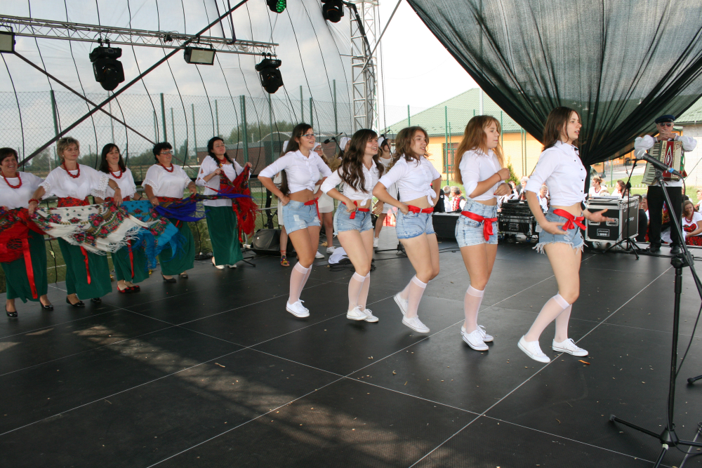 Na tym zakończyła się część obrzędowa i rozpoczęły się występy artystyczne. Widownię bawili kolejno: kapela góralska ,,Juhas” z Ujsołów k/Żywca, kapela ludowa ,,Działoszanie” z Działoszyc, kapela „Durmanki” z Poradowa, zespól „Riff Band” z Miechowa oraz grupy taneczno-wokalne z Gminnego Ośrodka Kultury w Kozłowie. Już po zmroku wystąpiła gwiazda dożynek, zespół disco dans „LOVERBOY”, a imprezę zakończyła potańcówka przy akompaniamencie grupy „Leader”.