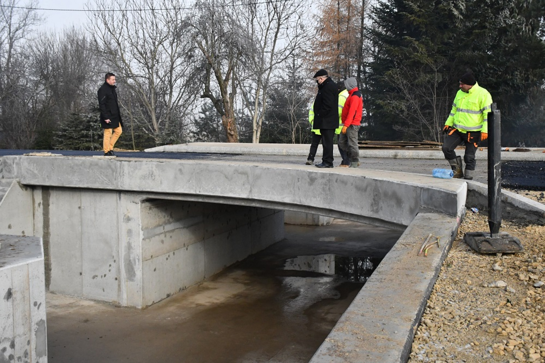 Starostowie Powiatu Miechowskiego na nowym moście w Swojczanach