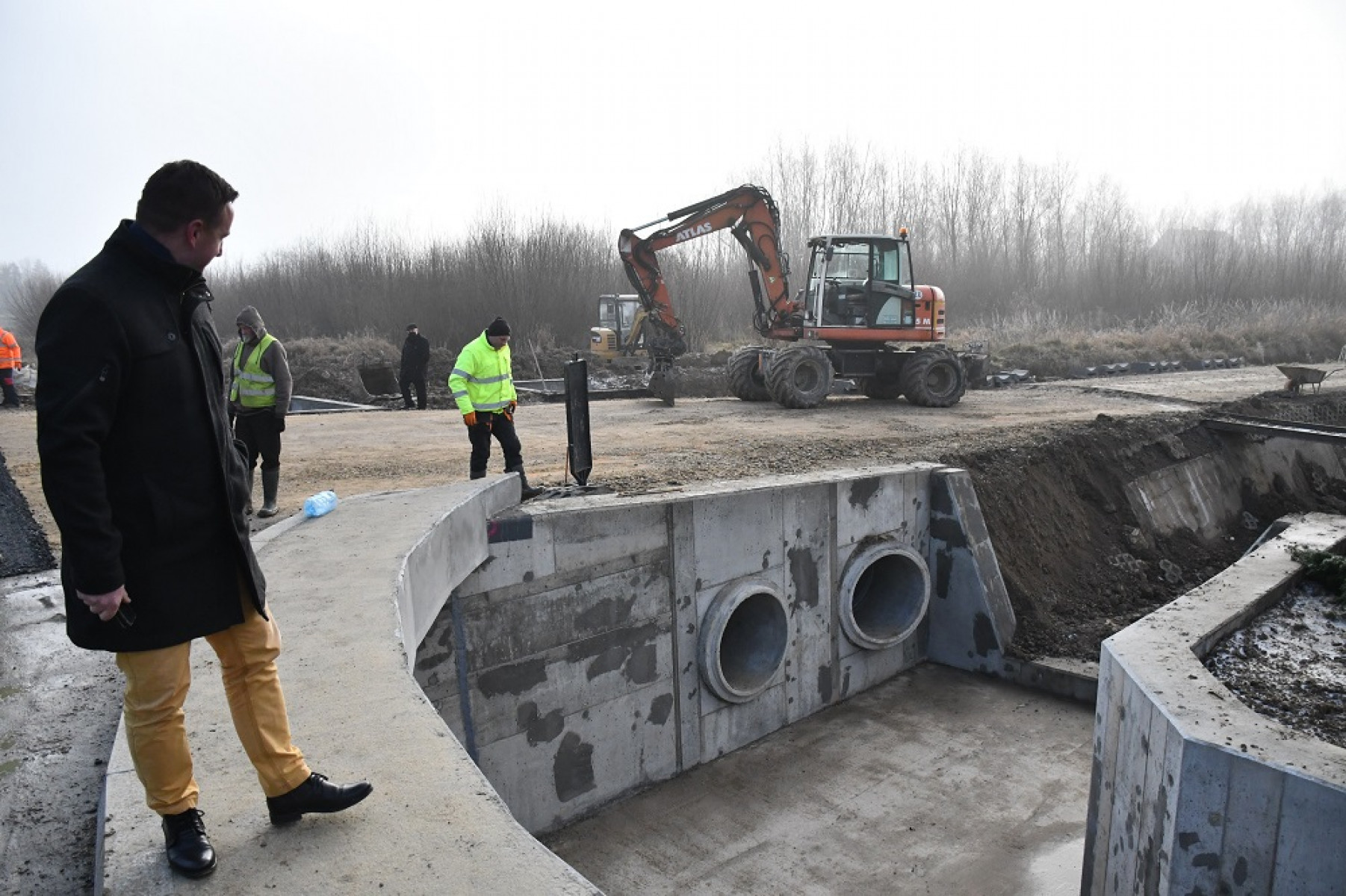 Wicestarosta Paweł Osikowski podziwia system odwodnienia na moście w Swojczanach