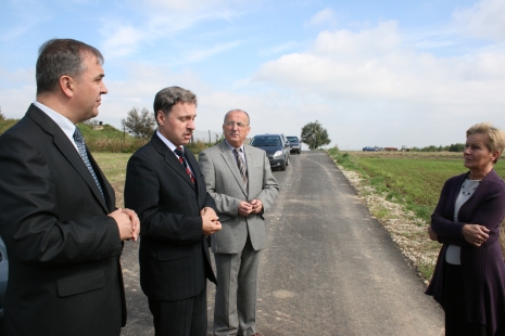 Wójt Lesław Blacha przypomniał, że tegoroczna współpraca z powiatem przyniosła efekt w postaci utworzenia ciągu komunikacyjnego o dług. ponad 8 km łączącego drogi gminne z powiatowymi i drogą wojewódzką. - To przyczyniło się do usprawnienia komunikacji przez gminę – dodał wójt. Starosta Mieczysław Bertek poinformował obecnych, że w najbliższych dniach podobne przekazywania odcinków dróg powiatowych zmodernizowanych przy 50 procentowym udziale środków gminnych odbędą się na terenach innych gmin powiatu.