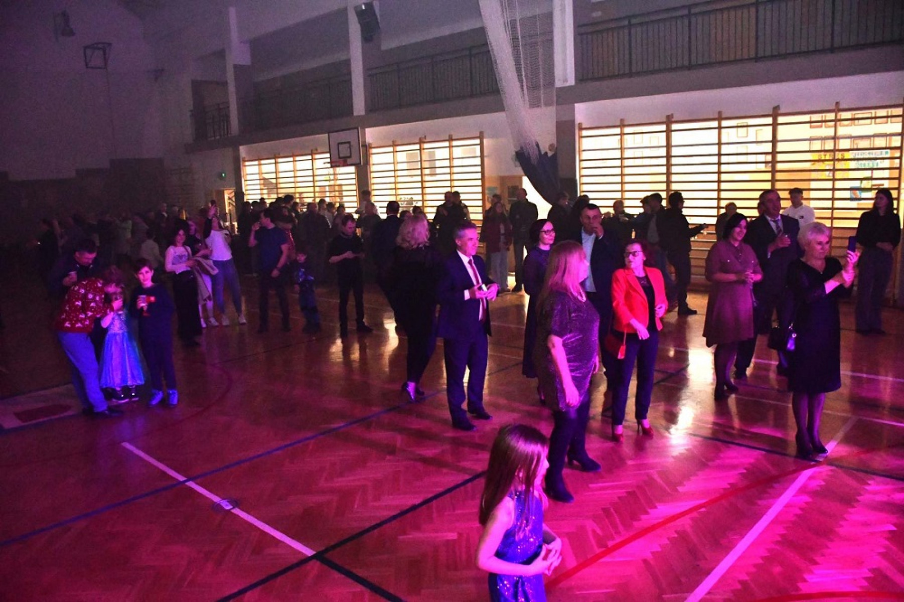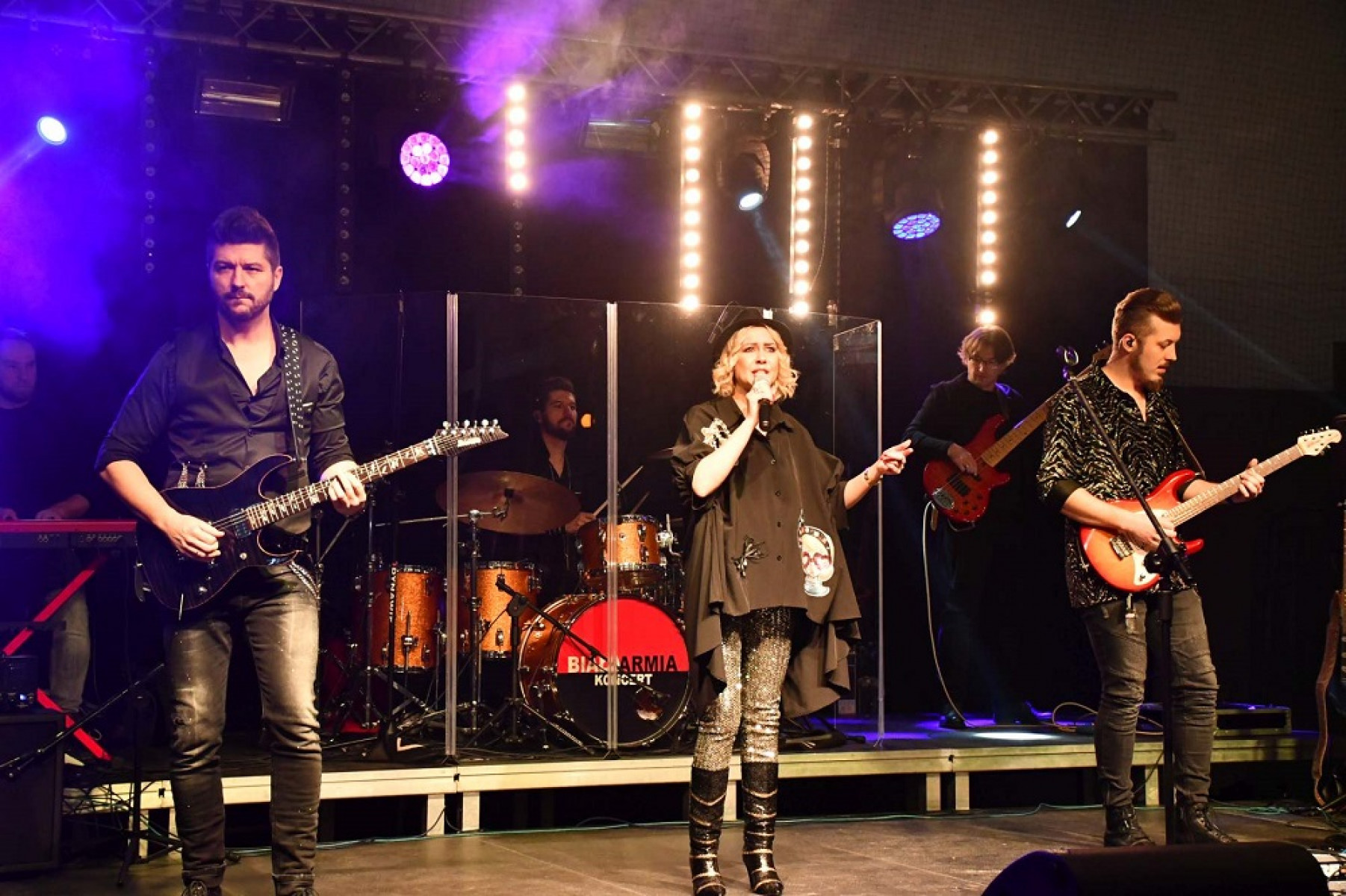 Sylwestrowy, otwarty dla wszystkich koncert w hali sportowej, o godzinie 22 rozpoczął dj Bartosz Gil. Godzinę później na scenę wyszedł zespół „Biała Armia”, znakomicie odgrywający covery największych przebojów grupy „Bajm”.