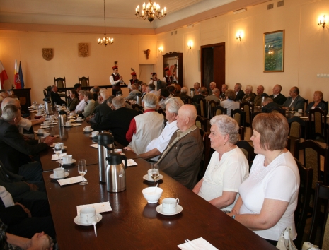 (...) Obecni byli przedstawiciele weteranów zrzeszeni przede wszystkim w Związku Kombatantów R.P. i b. Więźniów Politycznych oraz w Stowarzyszeniu Żołnierzy Armii Krajowej - Inspektorat ,,Maria". Nie zabrakło kombatantów zrzeszonych w kołach terenowych ww. organizacji rozsianych w gminach. Świadków minionych czasów wsparli obecnością członkowie Rejonowego Klubu Oficerów Rezerwy, LOK, Związku Byłych Żołnierzy i Oficerów R.P. oraz historycy, regionaliści i osoby współpracujące na co dzień z weteranami. Refleksją historyczną i osobistą o początku wojny w Miechowie podzielił się Włodzimierz Barczyński, wiceprezes Miechowskiego Towarzystwa 1163 Roku. Wiązankę wojskowych melodii i pieśni wykonała kapela ludowa ,,Lasowiacy" kierowana przez Lidię Musiał, wprowadzając gości i gospodarzy w nostalgiczny nastrój. Znaczną część okolicznościowego spotkania wypełniły wspomnienia bezpośrednich uczestników historycznych wydarzeń. Były również recytowane wiersze, czytane wspomnienia i śpiewane modlitwy przez sędziwych weteranów. Dziękowano staroście za troskę, pamięć i kultywowanie tradycji wrześniowych spotkań. Starosta Mieczysław Bertek wzniósł toast za zdrowie i długie życie gości. Życzono sobie, by w takim samym gronie można było spotkać się za rok w Starostwie Powiatowym w Miechowie.