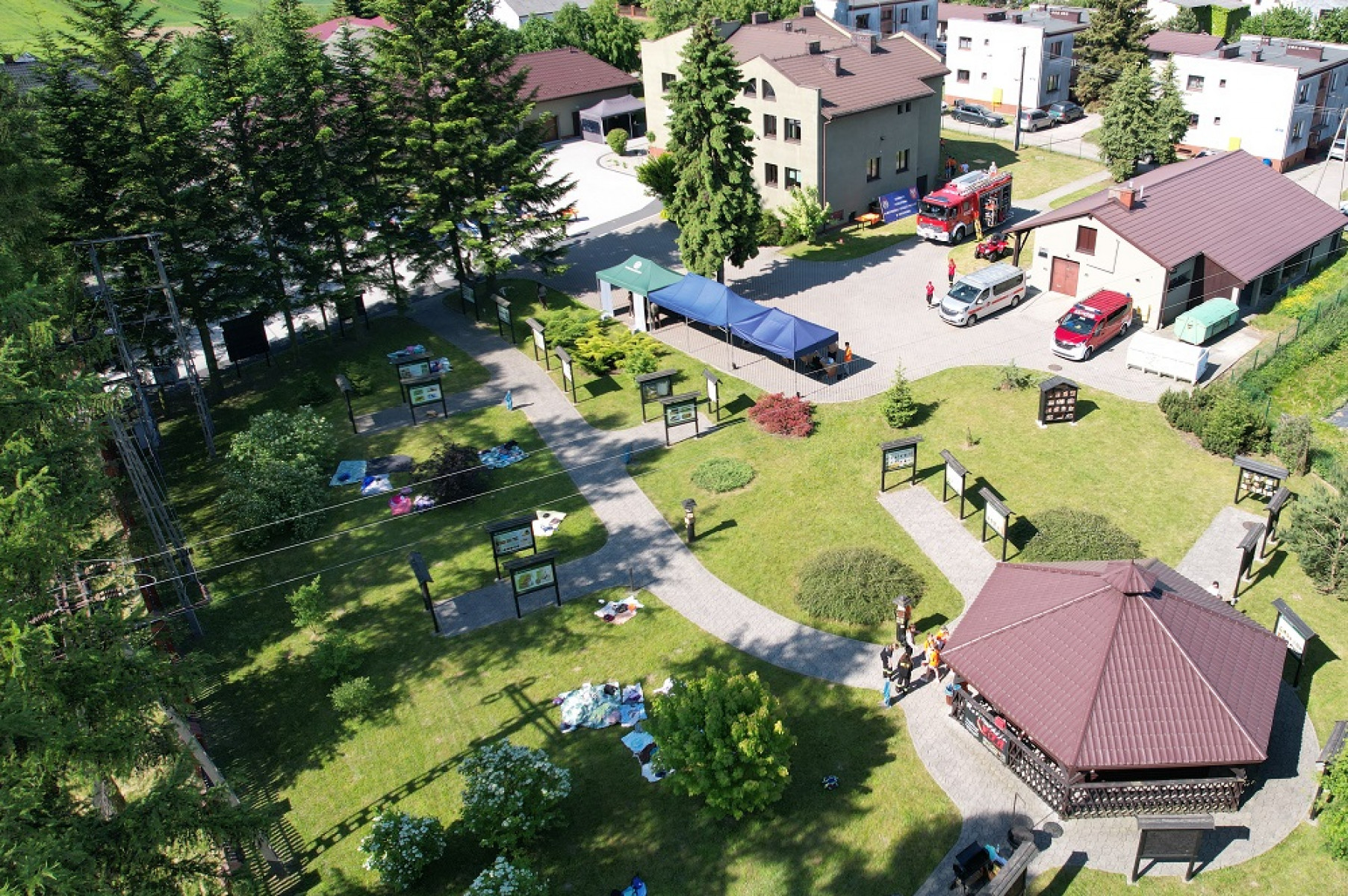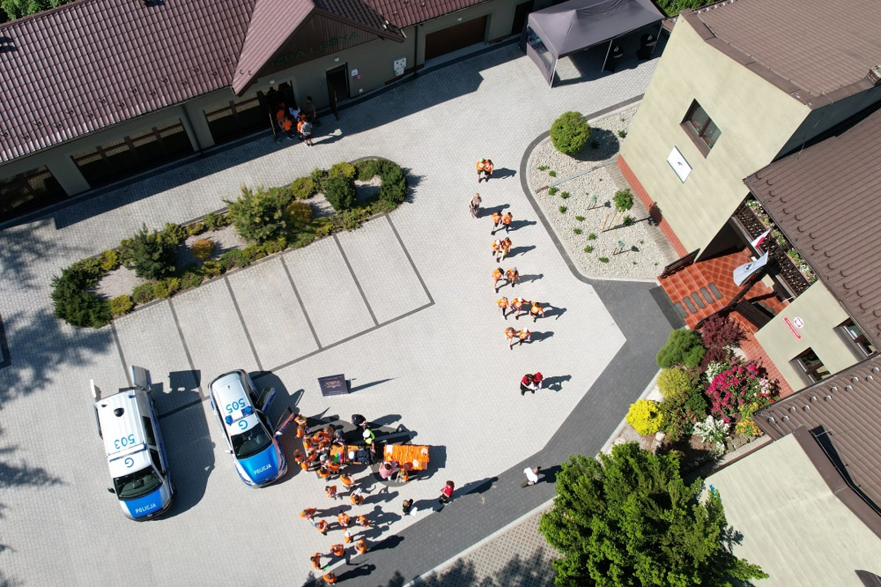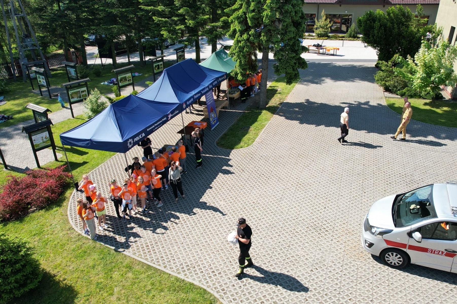 Na placu przed Nadleśnictwem na sygnał syreny strażackiej podzielone grupy dzieci odwiedzały poszczególne stanowiska przygotowane przez wspomniane służby powiatowe. A było co zwiedzać i podziwiać. Wozy i sprzęt strażacki, radiowozy policyjne, ścieżki edukacyjno-przyrodnicze. Dzieci mogły również zmierzyć się na strażackim torze sprawnościowym, poznać podstawy udzielania pierwszej pomocy, zdobyć wiedzę jak zachowywać się bezpiecznie w lesie, w ruchu drogowym itp. Dużo śmiechu i zabawy było choćby przy sprawdzaniu, ile dzieci pomieści przedział do przewozu osób zatrzymanych w policyjnym radiowozie. Dla wszystkich uczestników przewidziano koszulki oraz poczęstunek - gofry, lody, kiełbaski.