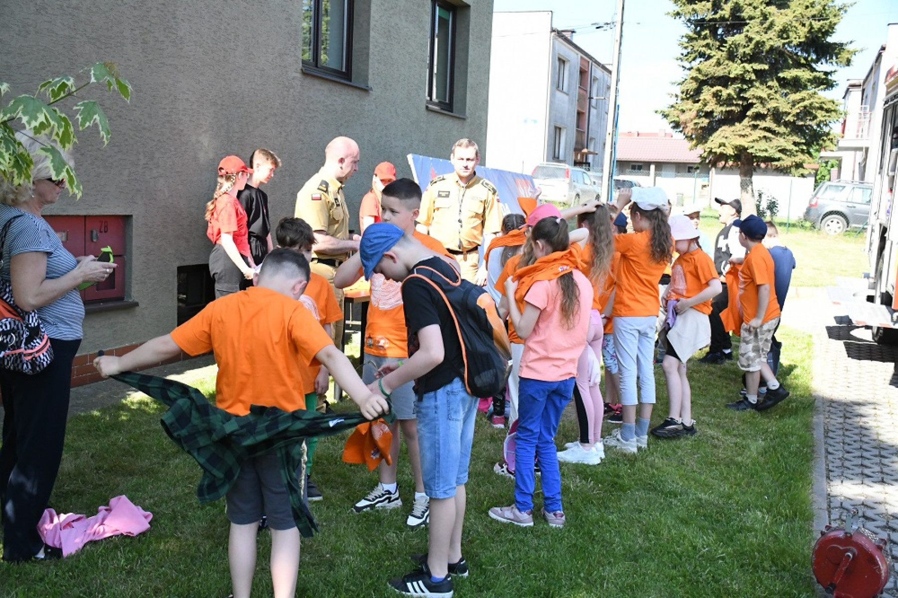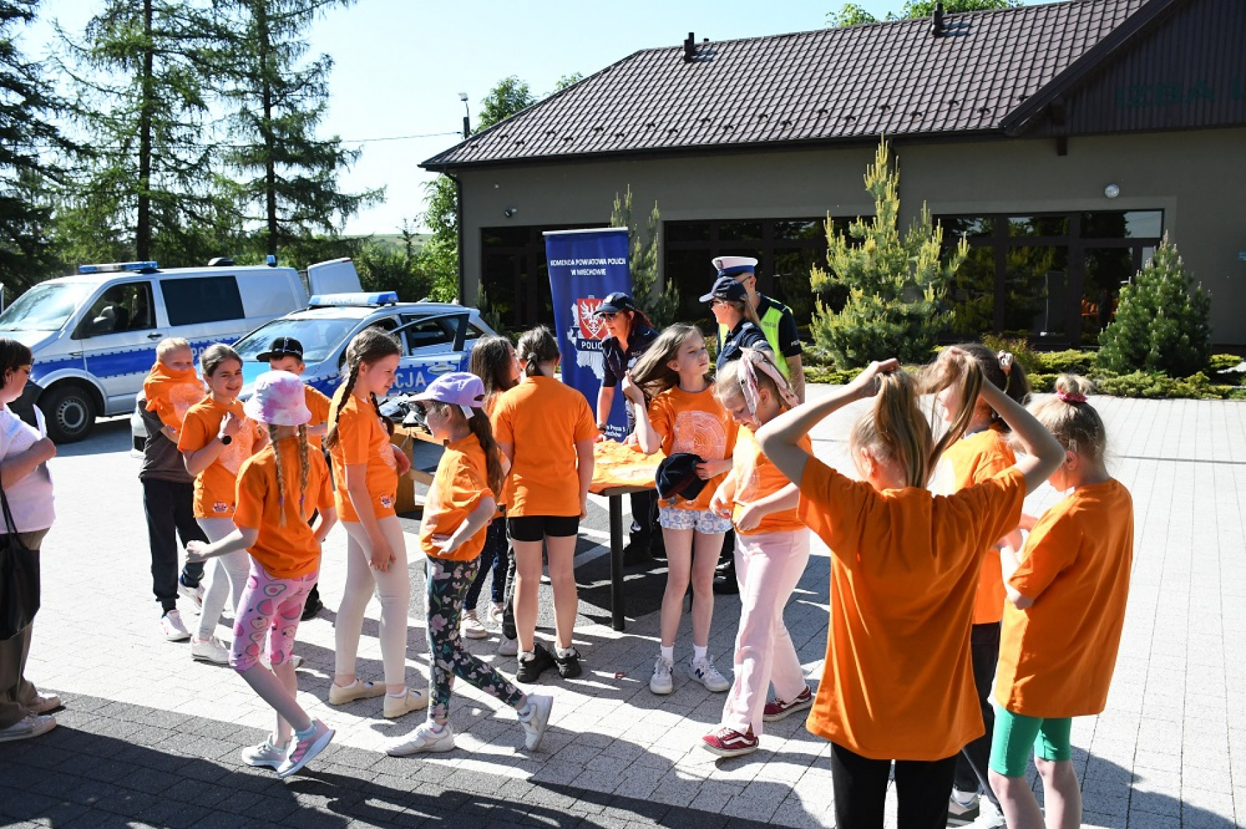 Dzień Dziecka służb mundurowych 2023 - poprawa fryzur po założeniu koszulek
