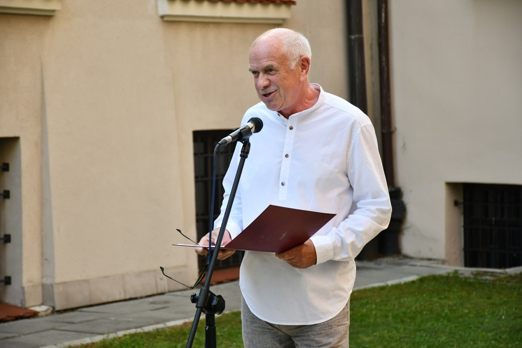 - Na Panią Krystynę mówimy dziś artystka, poetka, ale to też wspaniały nauczyciel, recenzent wielu prac malarskich - podkreślał Starosta Miechowski Jacek Kobyłka. Dzielił się z zebranymi wspomnieniami, jeszcze z czasów dyrektorowania Gimnazjum w Książu Wielkim, ze wspólnych działań z artystką celem nadania imienia szkoły - Stefana Żechowskiego.