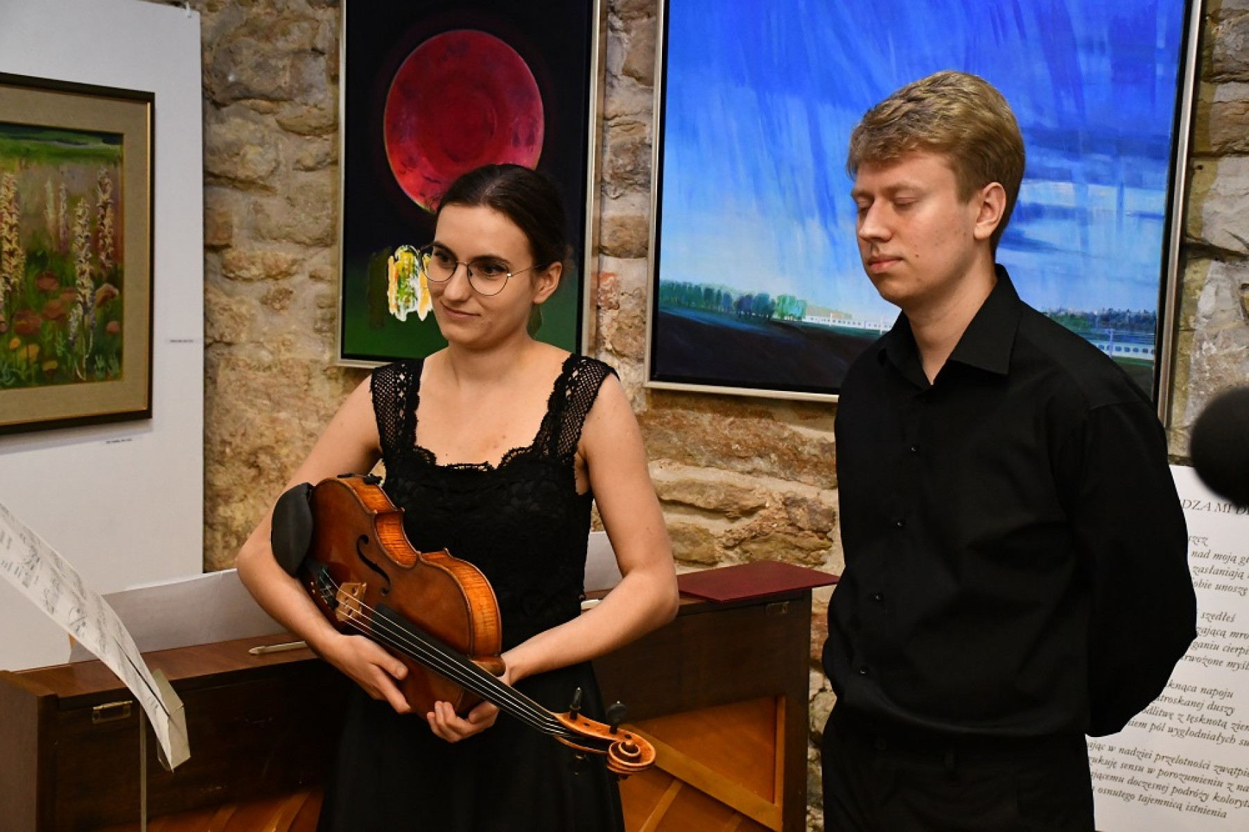 Wernisaż Krystyny Olchawa uświetnił koncert muzyczny w wykonaniu altowiolistki - Martyny Dziechciarz i akompaniującego na pianinie - Michała Dziewiora.