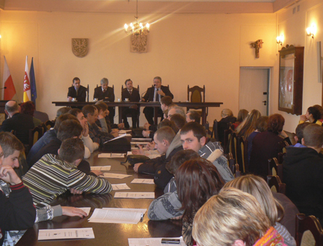 - Przyjechałem do was w ramach realizowanego przeze mnie projektu edukacyjnego skierowanego do młodzieży szkół średnich w naszym regionie. Celem tej akcji jest dalsze poznanie i przybliżanie wiedzy o UE. - Na potwierdzenie swych słów poseł do parlamentu przywiózł barwny informator pn. ,,Europa dla młodzieży" wydany i kolportowany z okazji 50-lecia Parlamentu Europejskiego. Obok przedstawicieli samorządów powiatu i gmin w sali zebrała się młodzież ze szkół ponadgimnazjalnych wraz ze swymi dyrektorami i pedagogami. Spotkanie prowadził starosta Mieczysław Bertek. Europoseł Czesław Siekierski rozpoczął rozmowę od przypomnienia historii Unii Europejskiej i procedury wstąpienia Polski do tej organizacji. Spotkanie przerodziło się w luźną rozmowę dotyczącą różnych aspektów funkcjonowania UE i roli Polski w tej międzynarodowej strukturze. Uczniowie pytali gościa m.in. o komentarz do aktualnej sytuacji politycznej w świecie i Europie, interesowali się ,,plusami" i ,,minusami" w piątym roku uczestnictwa naszego kraju w UE, prosili o wyjaśnienia spraw związanych ze stażami w krajach członkowskich Unii, dopytywali się o specyfikę pracy deputowanego i funkcjonowanie siedziby, biur i agend UE w Brukseli i innych państwach. Najbardziej aktywny z dyskutantów - Adam Szopa, słuchacz ZS Nr 1 w Miechowie otrzymał nagrodę w formie wyjazdu do Brukseli, ufundowanego przez europosła.