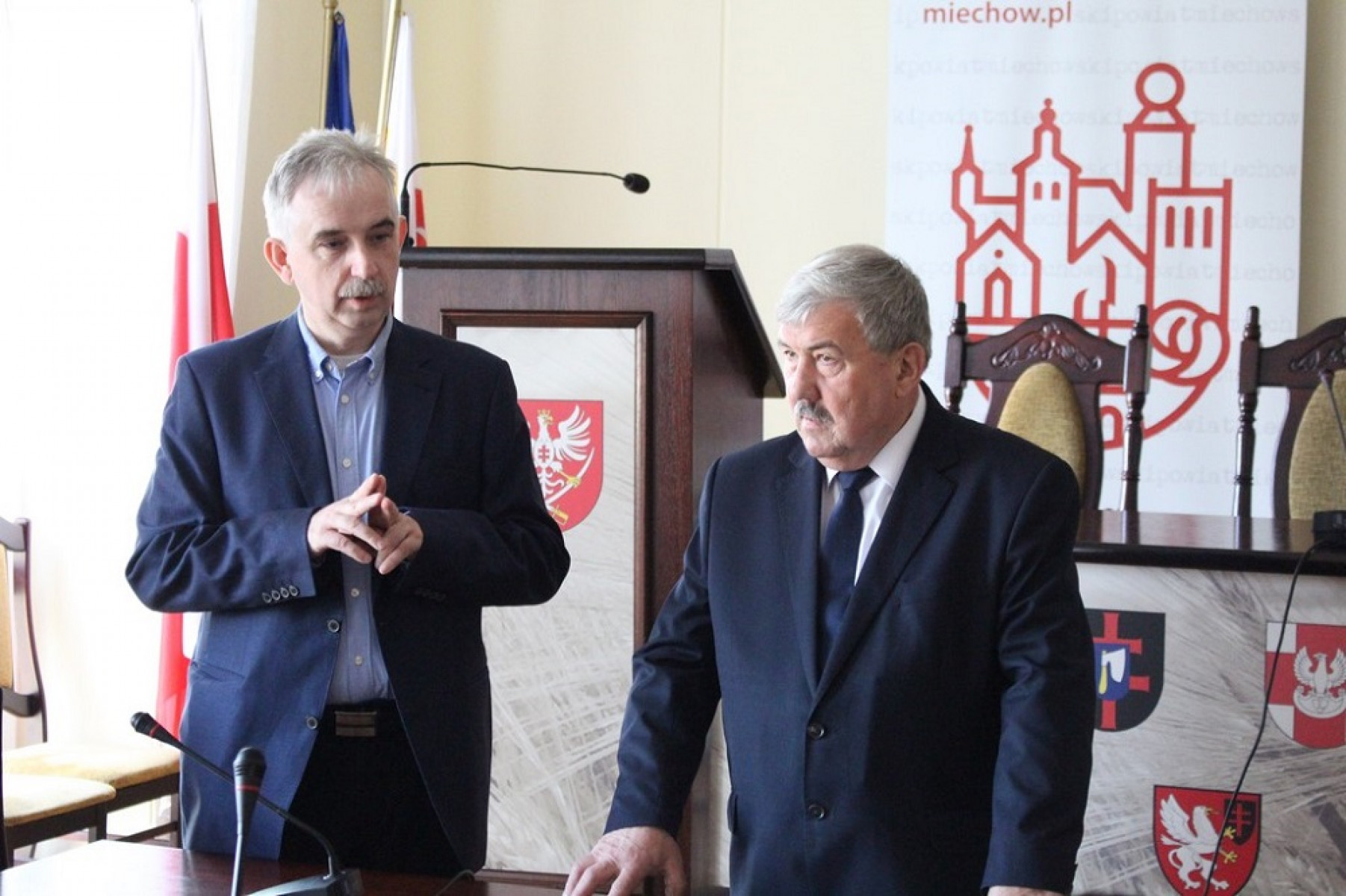 W czasie pobytu goście złożyli wizytę w Starostwie Powiatowym. O historii funkcjonowania administracji i samorządu powiatowego od 1999 roku opowiedział starosta Jacek Kobyłka, który potem wraz z Piotrem Grządzielem, radnym i członkiem Zarządu Powiatu, inicjatorem współpracy pomiędzy ww. szkołami odpowiadali na zadawane przez młodzież pytania. Uczniowie francuscy podkreślali gościnność i serdeczność jaką spotkali na ziemi miechowskiej, która urzekła ich wspaniałymi krajobrazami. O francuskich realiach oświatowych na przykładzie Liceum w Longeron opowiedzieli pedagodzy - Pascal Cousseau i Marie Pierre.