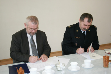 W obecności członków Zespołu starosta Marian Gamrat i st. bryg. Grzegorz Kosiński, komendant powiatowy PSP podpisali porozumienie w sprawie określenia zadań realizowanych przez Powiatowe Stanowisko Kierowania KP PSP w Miechowie w ramach działania z Powiatowym Centrum Zarządzania Kryzysowego w Miechowie. Dzięki takiej formie współpracy w ewentualnych sytuacjach kryzysowych Powiatowe Stanowisko Kierowania będzie centralnym punktem dyspozycyjnym, w którym wspólnie będą przyjmować zgłoszenia i reagować na nie dyżurny straży i pracownik starostwa. Zapewni to pełną koordynację działań i właściwy przepływ informacji (do tej pory wiadomości kryzysowe spływały odrębnie do budynku starostwa). Komendant straży dodał, że PSK jest w pełni wyposażone technicznie do pełnienia ważnej misji i niezależne od ewent. awarii (nowy agregat prądotwórczy). Usprawnienie powiadamiania kryzysowego to efekt wyciągniętych wniosków i doświadczeń po ubiegłorocznych kłopotach z aurą (szać zimowa i wiosenne opady).
