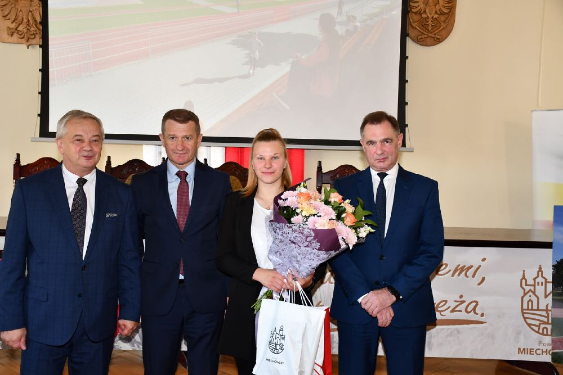 Wiceminister Sportu i Turystyki - Ireneusz Raś oraz Starostowie Powiatu Miechowskiego - Krzysztof Świerczek i Jerzy Pułka złożyli Wiktorii Filus serdeczne gratulacje z okazji wywalczenia złotego medalu na Mistrzostwach Świata w karate, które odbyły się 28 września w Osace.