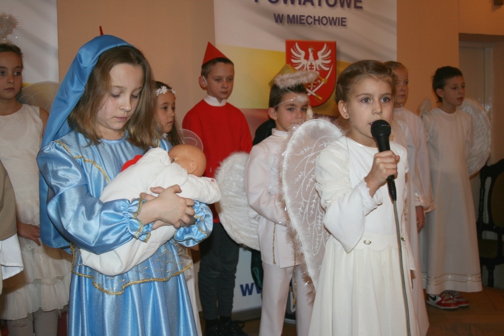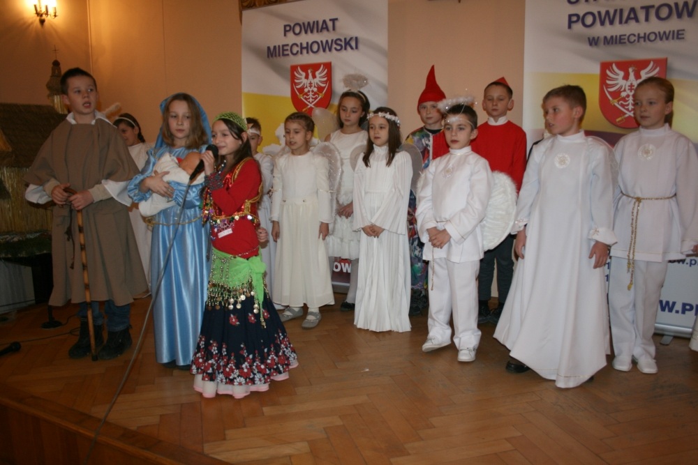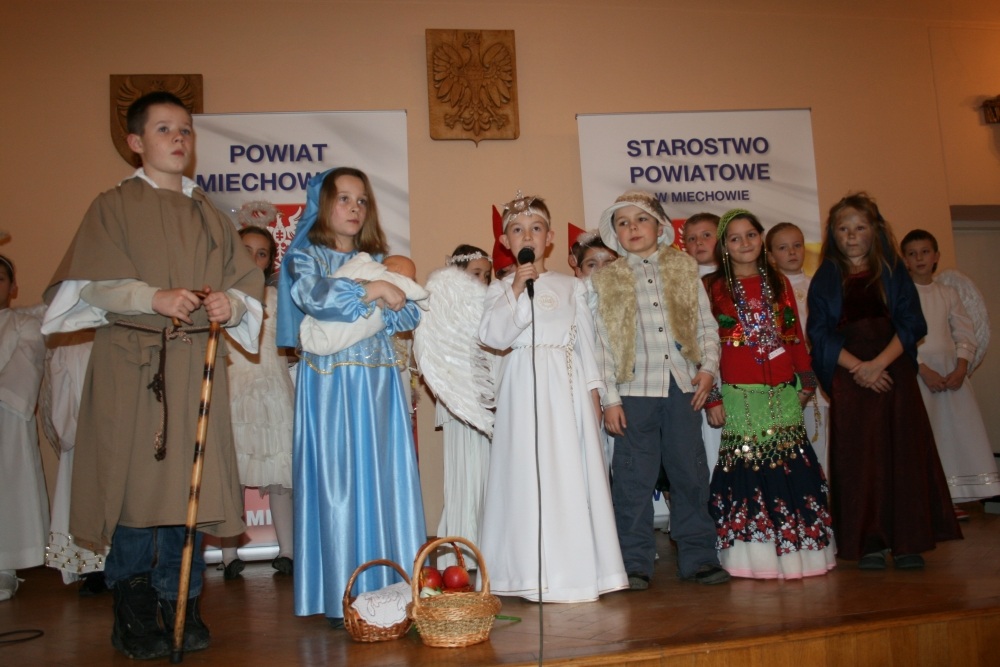 (...) zorganizowanej przez Komendę Hufca ZHP w Miechowie. Zebranych witała hm Danuta Rzemieniec, komendantka hufca. Na scenie pojawiła się liczna grupa uczniów Szkoły Podstawowej Nr 1 w Miechowie, którzy przebrani w stroje znane z ikonografii bożonarodzeniowej przedstawili ,Jasełka Bajkowe". Były teksty i śpiew, indywidualne i zbiorowe występy, a nad całością dominowały popularne kolędy. Z wypowiadanych przez małych aktorów kwestii jawił się jednoznaczny przekaz: ,,Dobro zawsze zwycięża, zaś biednym należy pomagać". Umiejętnościami recytatorskimi i wokalnymi popisywali się członkowie zastępów ,,Leśnych Skrzatów" i ,,Pracowitych Pszczółek" oraz dzieci ze świetlicy socjoterapeutycznej prowadzonej przez harcerzy. Nad przebiegiem występów czuwały dh phm Barbara Adamska i dh pwd Bogusława Zabadaj, które opracowały także scenariusz, scenografię i choreografię. We wspólnej, harcerskiej wigilii uczestniczyli: wicestarosta Bogusław Miś, sekretarz powiatu Maria Sztuk, burmistrz Dariusz Marczewski i naczelnik Poczty Jadwiga Zięba. Okolicznościowe spotkanie dopełniły świąteczne życzenia, łamanie się opłatkiem i degustacja przysmaków przygotowanyh przez harcerzy i rodziców.