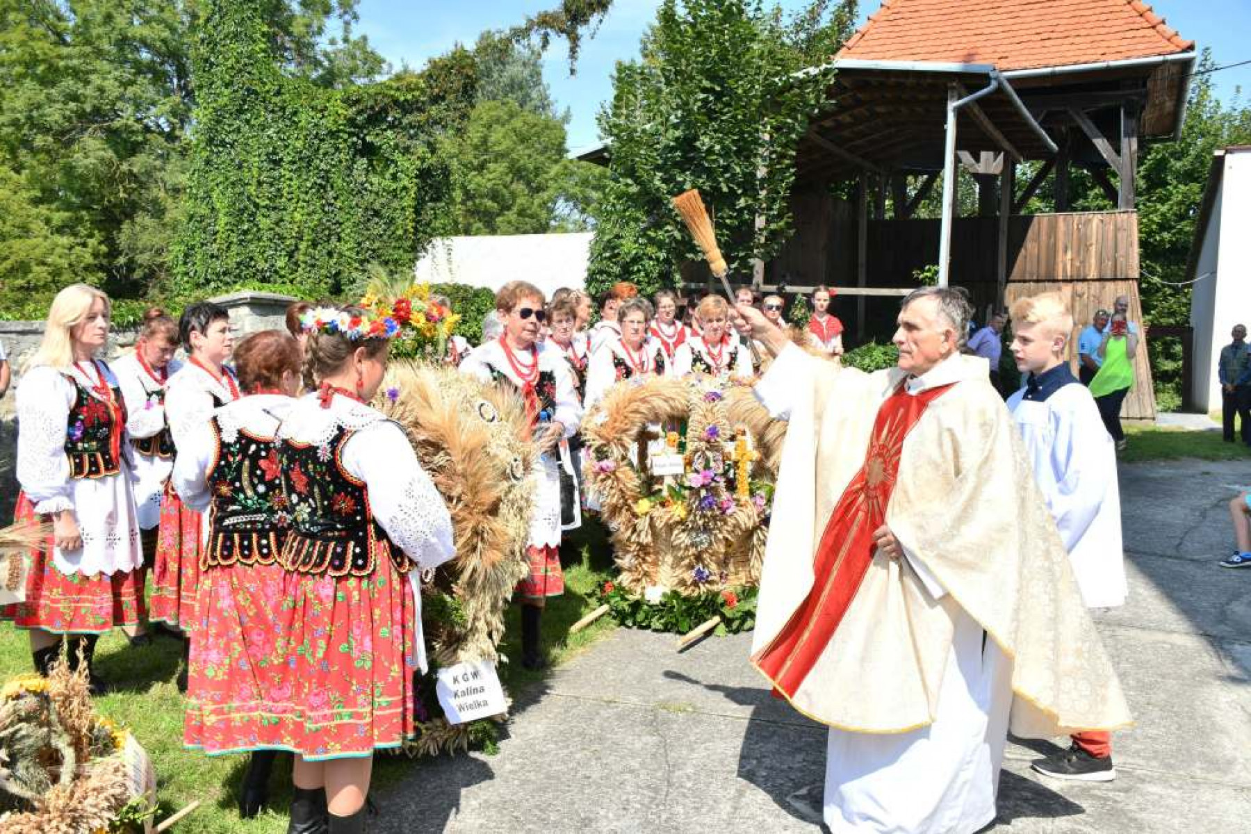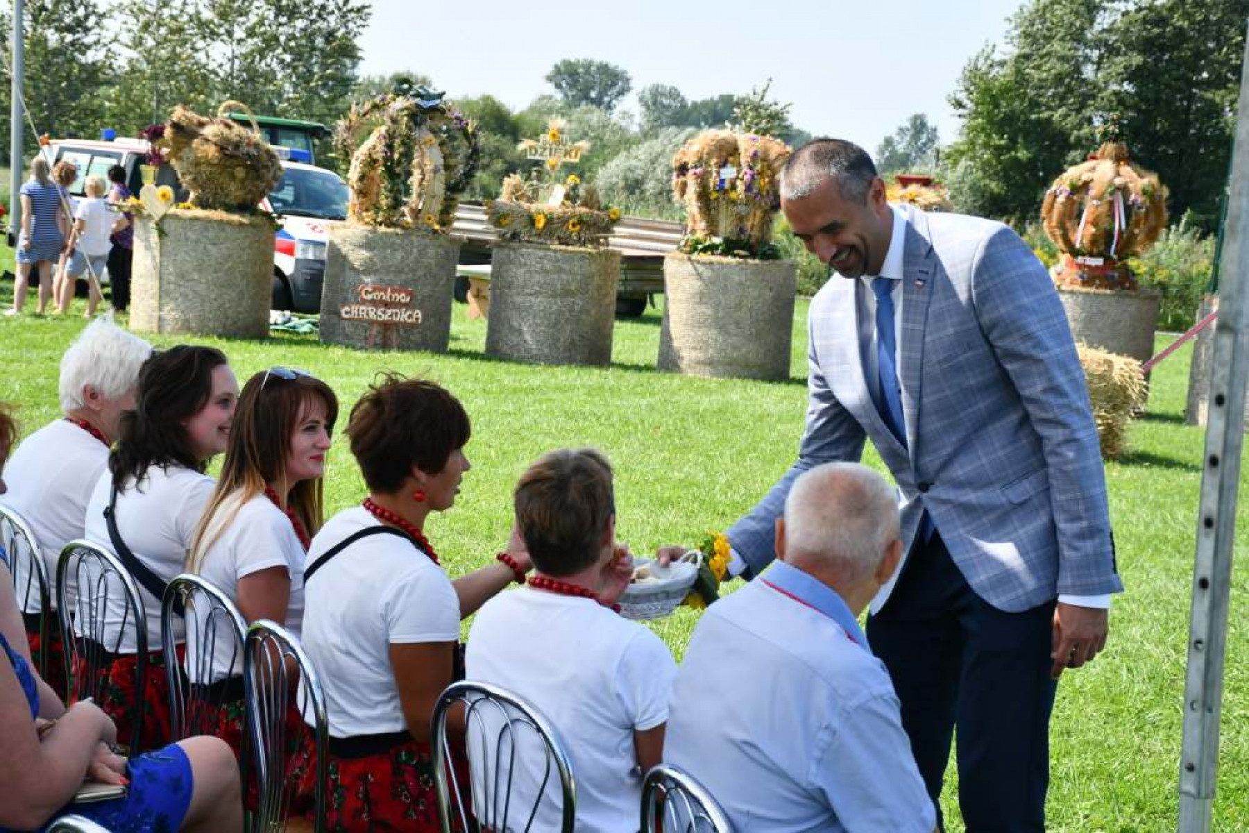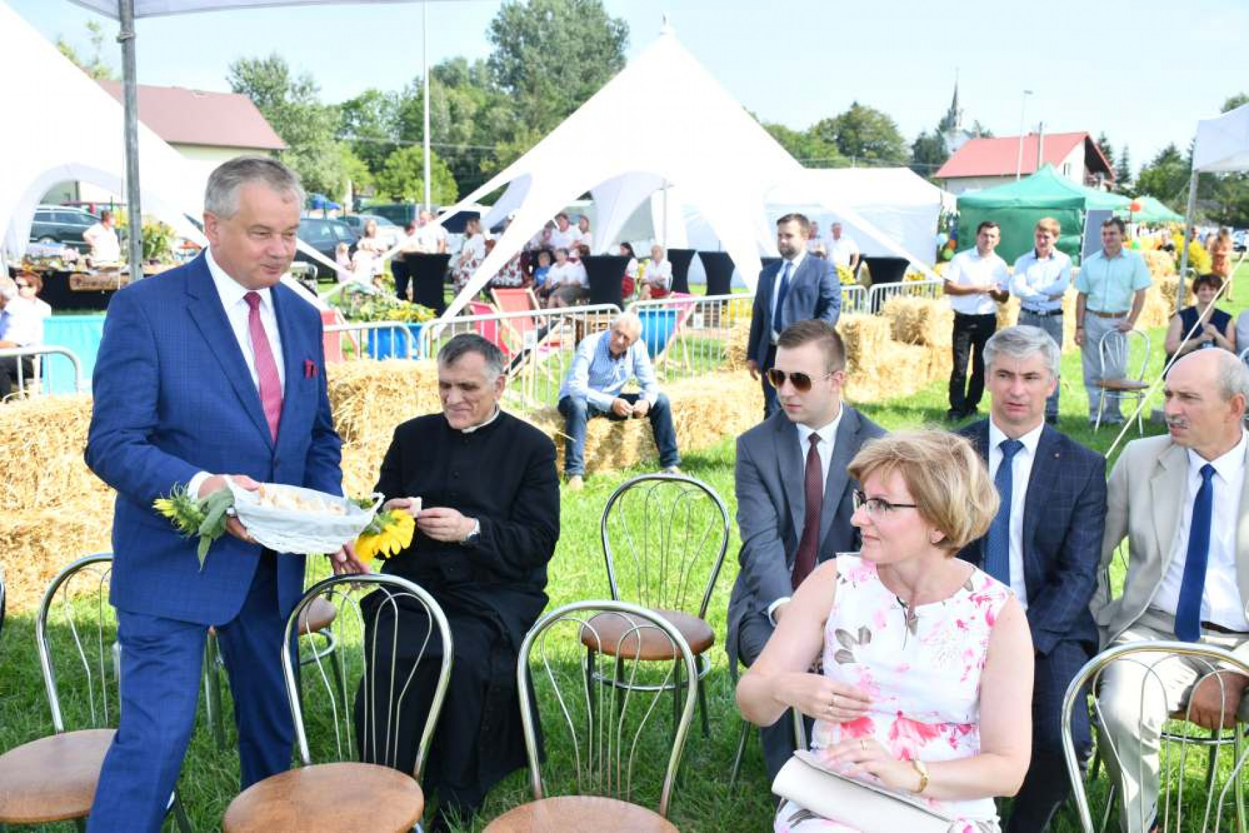 Starosta Jacek Kobyłka życzył rolnikom zdrowia i wytrwałości w niełatwej pracy. Dziękował za ich przywiązanie do ziemi, do tradycji, polskości i religii, a więc do tych wszystkich wartości kultywowanych od wieków na polskiej ziemi. Dziękował także kołom gospodyń wiejskich za przygotowanie wieńców i degustacji tradycyjnych potraw oraz wszystkim, którzy przyczynili się do organizacji dożynek.