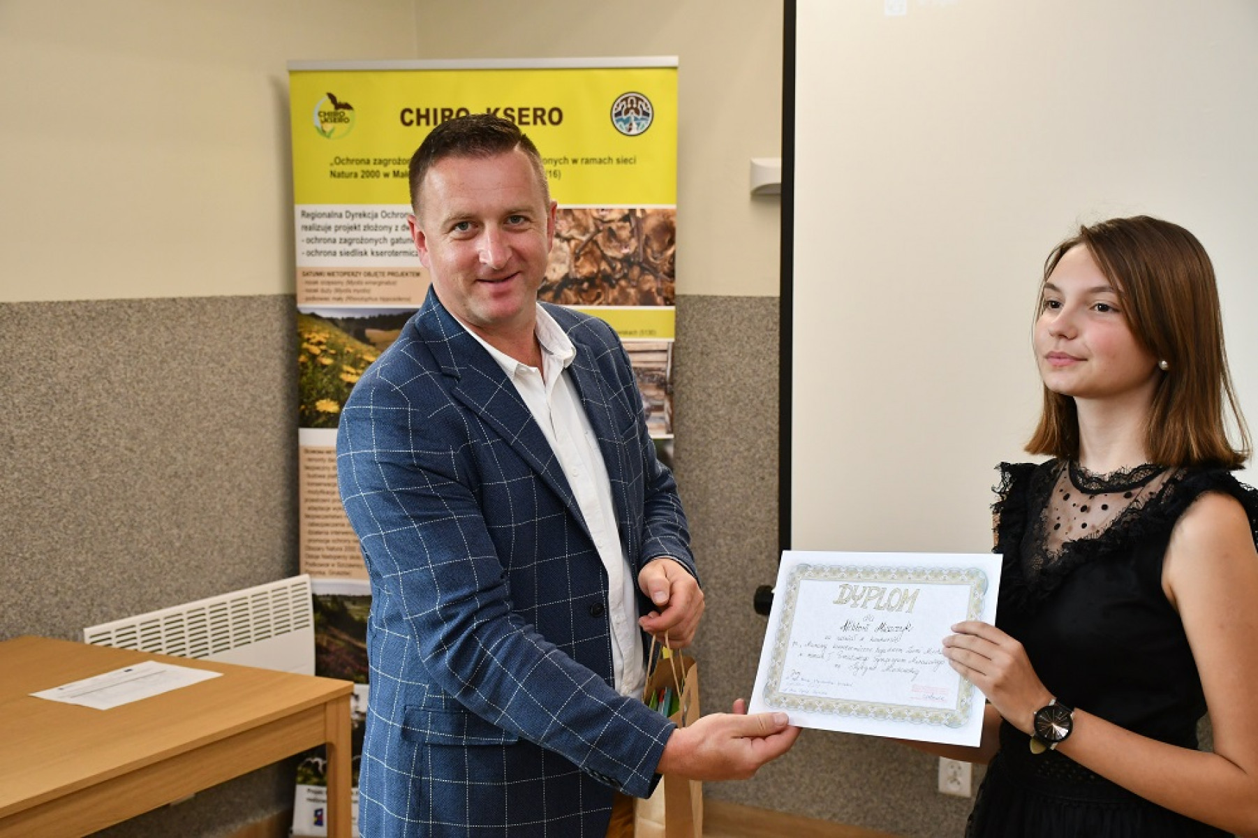 Wicestarosta Paweł Osikowski wręcza wyróżnienie Milenie Pazera