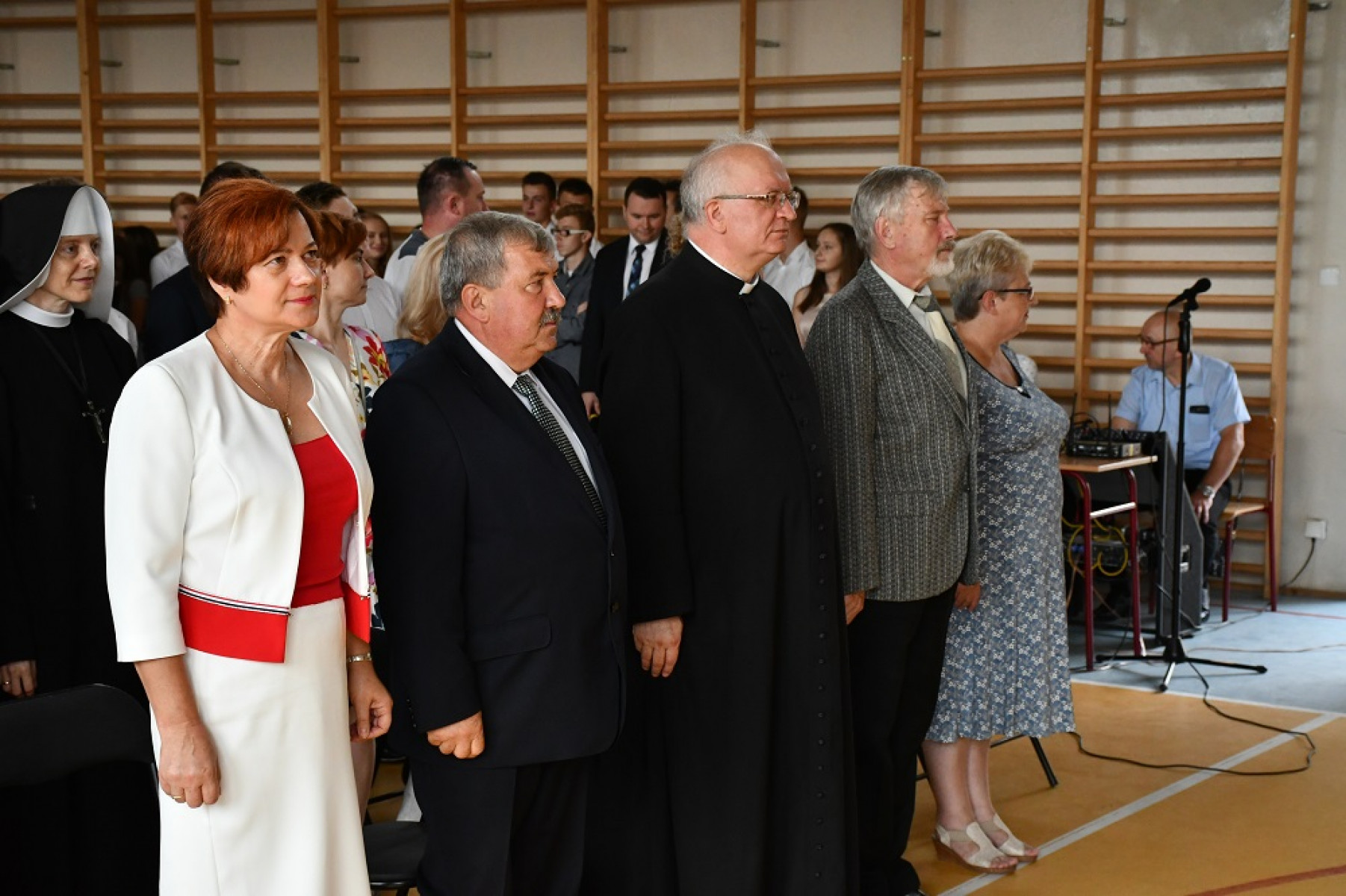 Dyrekcja, starosta Jacek Kobyłka, ks. proboszcz Franciszek Siarek i zaproszeni goście
