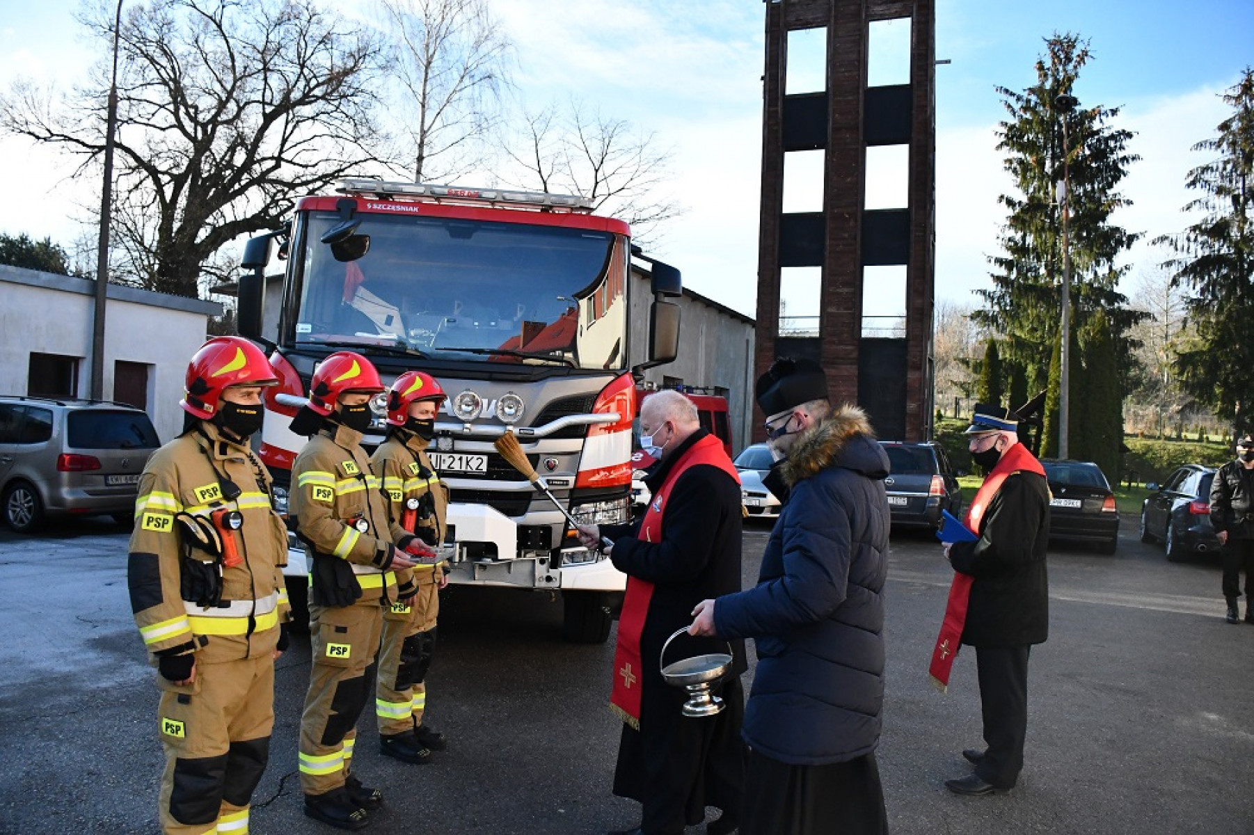 U schyłku 2020 roku, 28 grudnia kapelani strażaków, wojewódzki - ks. bryg. Władysław Kulig oraz powiatowy - ks. proboszcz Franciszek Siarek, w obecności włodarzy Powiatu Miechowskiego - starostów Jacka Kobyłki, Pawła Osikowskiego i przewodniczącego Rady - Krzysztofa Świerczka, poświęcili nowy średni wóz strażacki Komendy Powiatowej Państwowej Straży Pożarnej w Miechowie. Odbyło się to nie tylko po to, by tradycji i ceremoniałowi stało się zadość, ale by siły najwyższe ze św. Florianem czuwały nad strażakami korzystającymi z nowej Scanii, która zasiliła miejscową komendę w pierwszej połowie listopada.