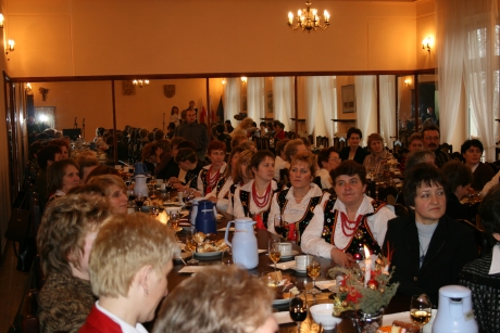 (...) Rozpoczął je występ jasełkowy dzieci i młodzieży z Gminnego Ośrodka Kultury w Kozłowie. Starosta Mieczysław Bertek złożył uczestnikom spotkania życzenia noworoczne, wręczył albumy poświęcone miechowskiej bazylice i wyraził nadzieję na dalszą udaną współpracę. Jej ukoronowaniem są występy i prezentacje dorobku KGW w czasie cyklicznych Dożynek Powiatowych. Życzenia w imieniu gości złożyła Stanisława Myrda, przewodnicząca KGW w Wierzbicy. Wzniesiono noworoczny toast, próbowano wypieków przygotowanych przez gospodynie i śpiewano kolędy. Liczną rzeszę KGW z powiatu miechowskiego reprezentowały: Bryzdzyń, Marcinowice i Wierzbica z gminy Kozłów, Kalina Wielka i Nieszków z gminy Słaboszów, Pojałowice i Szczepanowice z gminy Miechów, Uniejów-Kolonia z gminy Charsznica i Kamienica z gminy Gołcza.