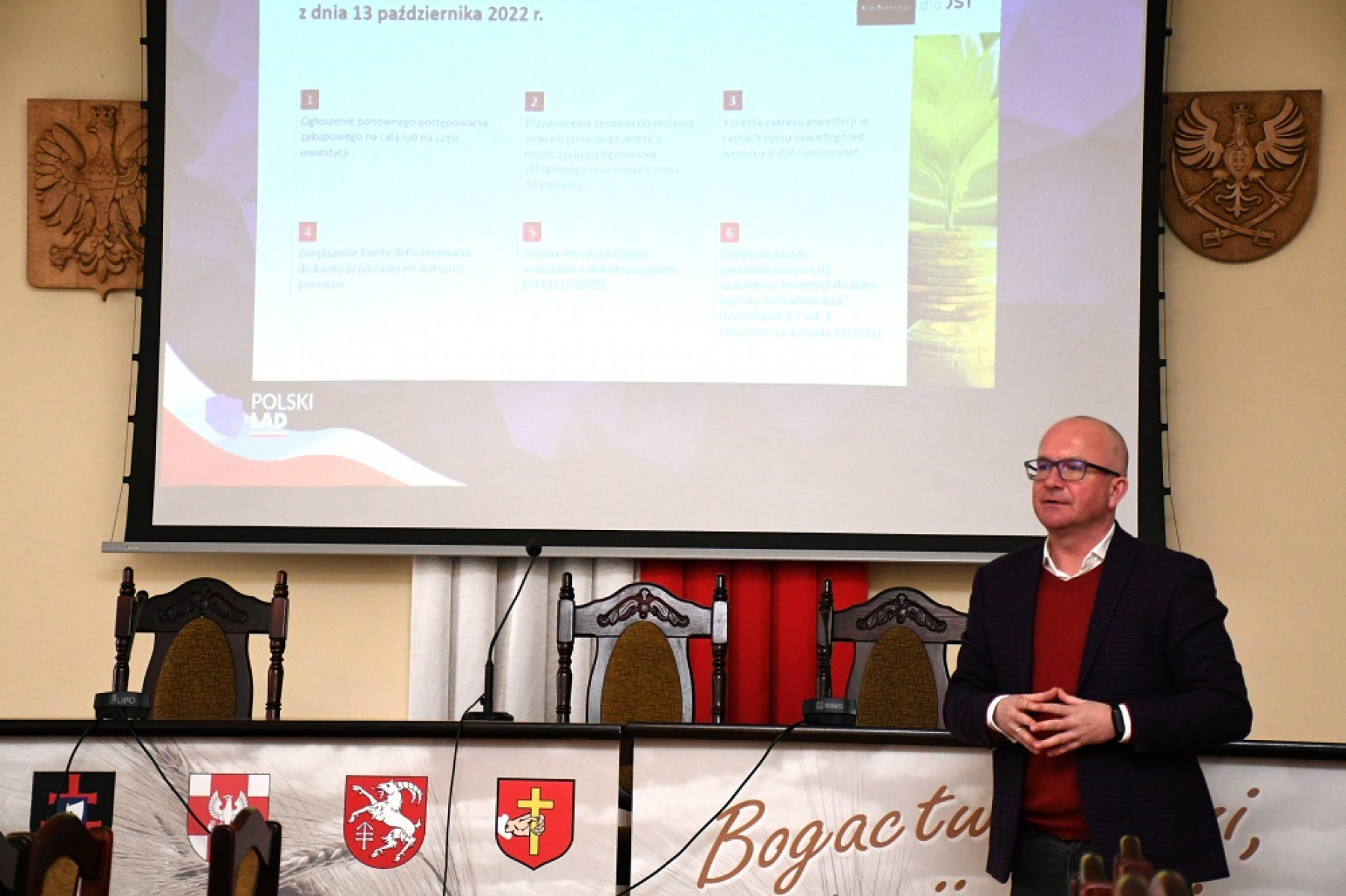 Rządowy Program „Polski Ład” odkąd został powołany zmienia polską rzeczywistość poprzez wydatne wsparcie różnorakich inwestycji samorządowych. Jak dotąd Powiat Miechowski pozyskał z tego programu ponad 42 mln zł, z czego 30 mln na wykonanie infrastruktury w Parku Technologicznym w Książu Wielkim, 8 mln zł na budowę wiaduktu w Uniejowie Rędziny i 4 mln na budowę sali gimnastycznej w Zagorzycach. Kolejna 6 już edycja programu skierowana jest na odbudowę zabytków. Założenia i wytyczne najnowszej odsłony programu, na szkoleniu informacyjnym dla włodarzy i przedstawicieli samorządów, 11 stycznia w Starostwie Powiatowym w Miechowie przedstawił Grzegorz Kwiatkowski, dyr. ds. rozwoju relacji społecznych Banku Gospodarstwa Krajowego.