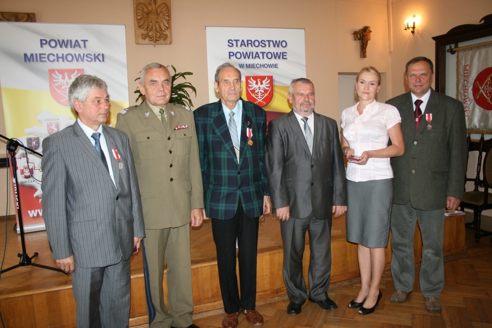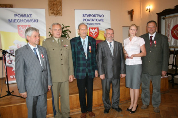 19 Września 2011(...) Okazją były obchody 72. rocznicy tragicznego września 1939r. i kontynuacja wieloletnich partnerskich kontaktów urzędu powiatowego z kombatantami. Na sali zasiedli kombatanci ze Stowarzyszenia Żołnierzy AK – Inspektorat ,,Maria”, ze Związku Kombatantów RP i b. Więźniów Politycznych oraz Związku Inwalidów Wojennych RP. Kombatanci reprezentowali koła miechowskie i gminne swych organizacji. Weteranom towarzyszyli członkowie wspierający i rodziny. Na sali byli również obecni członkowie organizacji żołnierskich – Związku Żołnierzy Wojska Polskiego – Koła Nr 16, Zarządu Rejonowego LOK i Rejonowego Klubu Oficerów Rezerwy. Na uroczystość przybyli: gen.bryg. Jerzy Wójcik, były dowódca 6. Brygady Desantowo – Szturmowej, a obecnie prezes Zarządu Wojewódzkiego ZŻWP, płk Julian Zięba, prezes Zarządu Wojewódzkiego ZK RPi b.WP w Krakowie i Adam Domagała, radny Sejmiku Województwa Małopolskiego. – Jestem pełen uznania dla Państwa drogi życiowej i dokonań wojennych. Jesteście dla nas Państwo otwartą księgą tamtych wydarzeń, którą cały czas chcemy czytać – powiedział starosta Marian Gamrat witając licznie zgromadzonych kombatantów. Wrześniowa uroczystość była okazją do nadania odznaczeń zasłużonym dla współpracy z kombatantami. Za wykazanie wrażliwości na ich potrzeby i popularyzację wartości patriotycznych z rekomendacji mjr. Józefa Jarno, prezesa ZK RP i b. WP, z rąk płk. Juliana Zięby Medal ZKRP i b.WP otrzymali: ks.dr Andrzej Boksiński z Parafii Grobu Bożego w Miechowie i b. starosta Mieczysław Bertek. Z kolei gen.bryg. Jerzy Wójcik uhonorował członków ZŻWP- Koło Nr 16 ,,Medalami za zasługi dla obronności kraju”. Złoty medal odebrał Jan Rusek, srebrne – Stanisław Pietrzyk i Andrzej Mucha, zaś brązowy Jan Latacz (wyróżnienie odebrała córka Magdalena). Ponadto Medale XXX-lecia ZŻWP stały się udziałem Jerzego Kowara i Andrzeja Muchy. Historyk Stanisław Piwowarski od lat zajmujący się m.in. problematyką wojskowości w latach II wojny światowej w powiecie miechowskim przybliżył zebranym najważniejsze wątki rocznicowe. Nie ograniczył się tylko do aspektu historycznego, ale wskazał na nowe wyzwania stojące przed środowiskiem miechowskich kombatantów (monografie tematyczne, utworzenie muzeum Ziemi Miechowskiej, pomnik katyński w Racławicach). Spotkanie w starostwie było okazją do wspomnień i refleksji kombatantów, którzy podzielili się osobistymi refleksjami z czasów tragicznego września sprzed 72. lat. Oprawę wokalną uroczystości zapewnili uczniowie SP Nr 1 w Miechowie ze swą opiekunką, radną powiatową Lidią Baranowską.