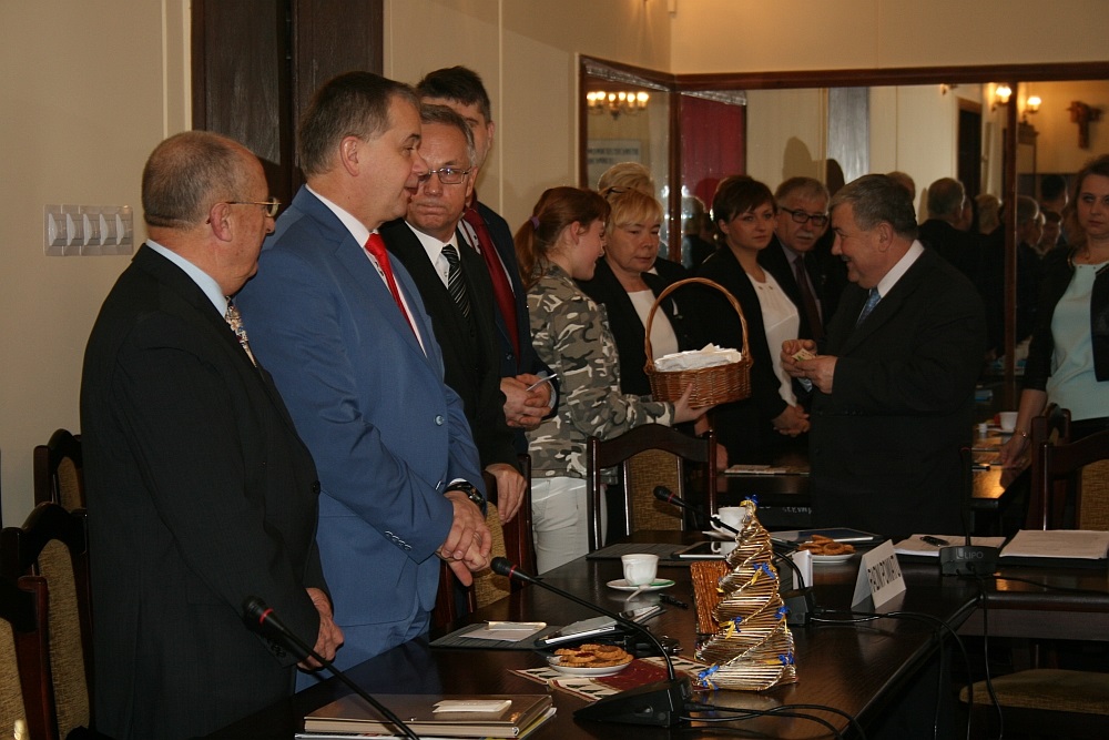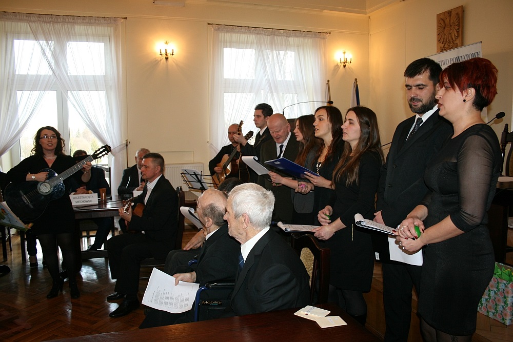 (...) Natomiast kolędy i okolicznościowe świąteczne utwory zaprezentował zespół wokalno - instrumentalny złożony z terapeutów i mieszkańców Domu Pomocy Społecznej w Miechowie, w integracji z wykonawcami z Zespołu Szkół Nr 1. Były również życzenia i papierowe choinki dla uczestników sesji wykonane przez mieszańców DPS. Najpopularniejsze kolędy przypomniał także koedukacyjny chór ,,Koral” z Gołczy. W imieniu radnych za występy dziękował przewodniczący Rady Powiatu Mariusz Wolny.
