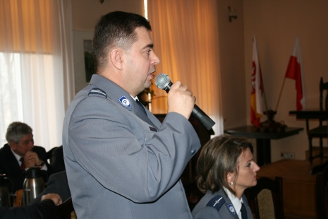Komendant policji omówił statystykę przestępstw, ich wykrywalność, zdarzenia drogowe w rozbiciu na gminy powiatu, przestępczość nieletnich i inne zakresy rocznej pracy KPP w Miechowie. Z kolei komendant straży pożarnej przypomniał statystykę interwencji zawodowych strażaków, pożarów i alarmów. Odrębną uwagę poświęcił zagrożeniom pożarowym na terenach wiejskich, odbiorom p-poż. nowych nieruchomości oraz problemowi przewożenia niebezpiecznych materiałów w komunikacji drogowej.
