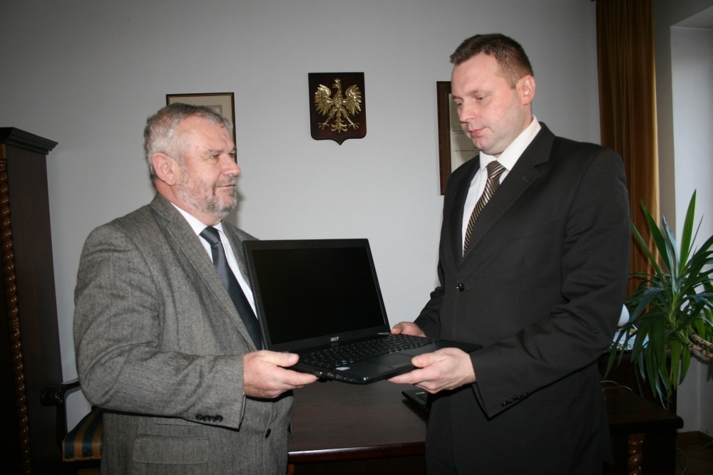 (...) który starosta Marian Gamrat, po wcześniejszej decyzji Zarządu Powiatu, przekazał na ręce zastępcy komendanta podinsp. Wojciecha Domagały. Jak zapewnił w podziękowaniu reprezentant mundurowej jednostki, nowy sprzęt będzie pomocny w codziennej pracy miechowskich funkcjonariuszy, m.in ,,na zwiększenie skuteczności działań profilaktycznych prowadzonych z udziałem młodzieży i podniesienia poziomu prelekcji oraz przy realizacji szkoleń doskonalenia zawodowego funkcjonariuszy i pracowników policji". Starosta dodał, że skuteczność działania miechowskiej Policji i jej dobre notowania wśród małopolskich jednostek zachęcają samorząd powiatowy do wspierania KPP w jej niełatwej pracy, której ceną jest bezpieczeństwo i porządek w mieście i powiecie.