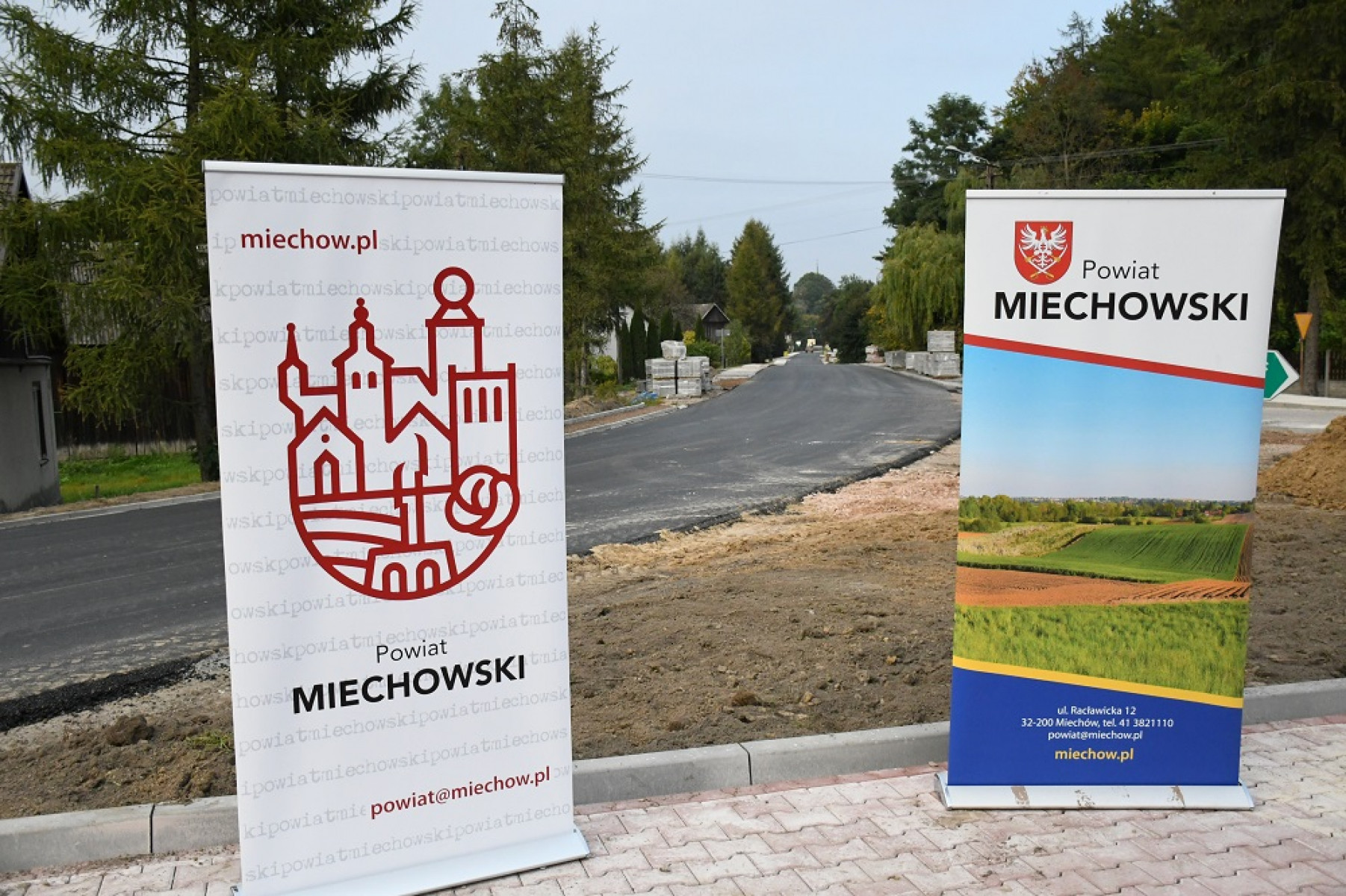 Miechowscy starości - Jacek Kobyłka, Paweł Osikowski, Przewodniczący Rady Powiatu Krzysztof Świerczek i dyr. Zarządu Dróg Powiatowych Roman Suchoń, w Kalinie Wielkiej przedstawili marszałkom stan zaawansowania robót przy inwestycji drogowej pn. Przebudowa drogi powiatowej 1224K Bukowska Wola - Działoszyce dł. 10,2 km, realizowanej w ramach Regionalnego Programu Operacyjnego Województwa Małopolskiego na lata 2014-2020. Całkowita wartość zadania wynosi ponad 7,8 mln zł, z czego 5 010 697 zł to udział środków unijnych z RPO WM. Oprócz Powiatu Miechowskiego, wkład finansowy w to zadanie ma Gmina Słaboszów.