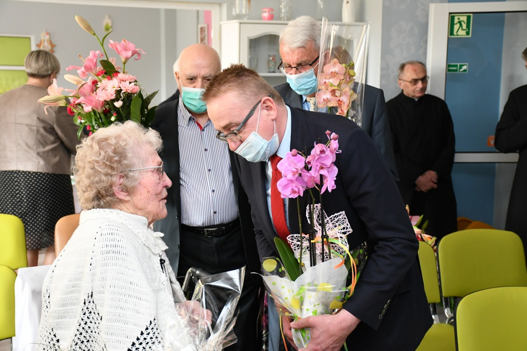 Życzenia na 100-letnie urodziny Marianny Surma od Starosty Miechowskiego Jacka Kobyłki