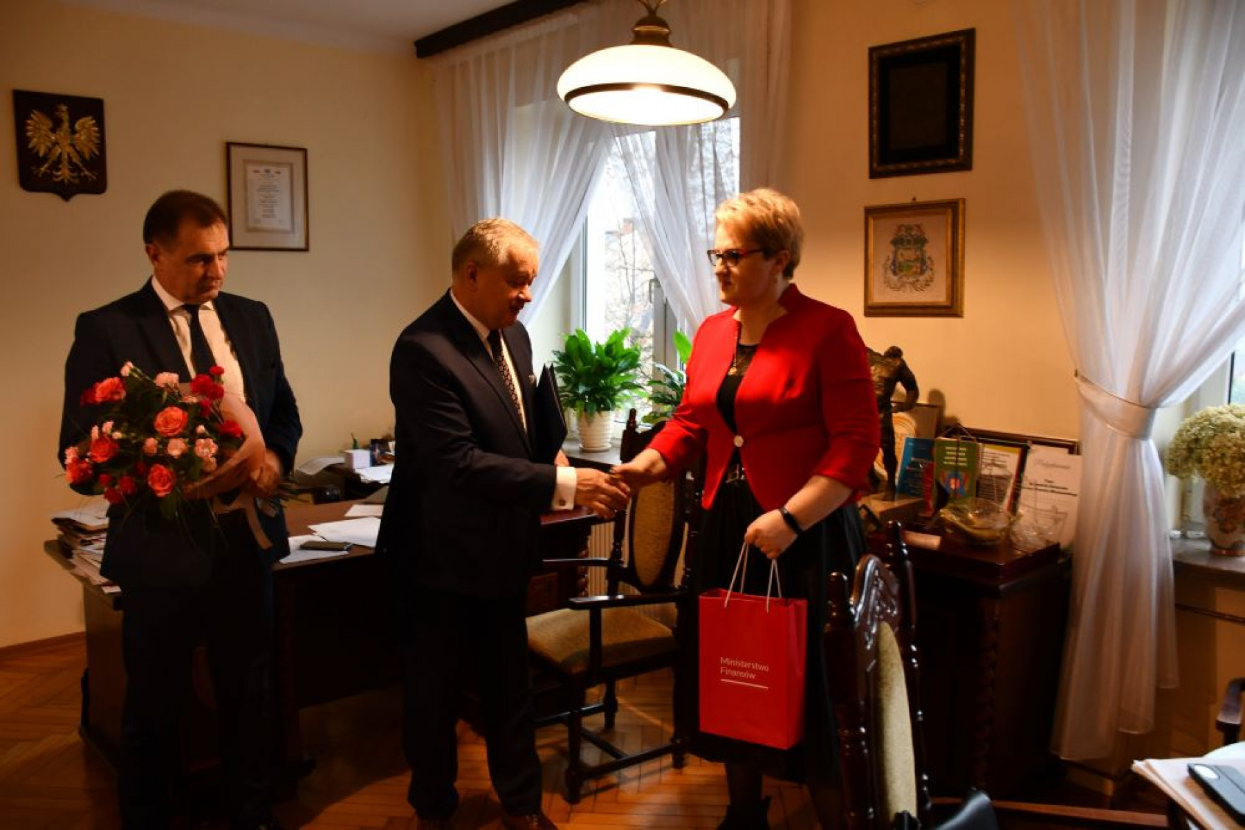 Zarząd Powiatu Miechowskiego podczas swojego posiedzenia w czwartek 14 listopada złożył najserdeczniejsze gratulacje Marcie Banach z okazji otrzymania odznaki honorowej "Za Zasługi dla Finansów Publicznych Rzeczypospolitej Polskiej" przyznanej przez Ministra Finansów.