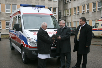 (...) - Ten samochód to duma naszego szpitala. Czekaliśmy długo na to auto, ale warto było - jednoznacznie skomentował wydarzenie Krzysztof Molęcki, szef zespołu kierowców pogotowia. Możliwości i wnętrze ratowniczego pojazdu prezentował dziennikarzom Piotr Gumula, ratownik medyczny i pielęgniarz. Nowy nabytek oznaczony symbolem ,,S" (z lekarzem) uzupełni mobilny sprzęt ratowniczy miechowskiego szpitala, usytuowanego przy bardzo ruchliwej, niebezpiecznej krajowej i międzynarodowej ,,siódemce". Starosta Marian Gamrat przekazał dokumenty ambulansu dyrektorowi ds. lecznictwa Marianowi Tamborowi z życzeniami, by dobrze służył ratownikom i pacjentom. Dyrektor dodał, że konieczne będzie jeszcze dosprzętowienie cennego nabytku w specjalistyczne wyposażenie, m.in. respirator transportowy, defibrylatory, zestawy do reanimacji, tlen, ssaki, płyny i leki. Nowy ,,mercedes" o wartości 299.000 zł zakupiono z dotacji Wojewody Małopolskiego w wys. 125.000 zł i powiatu miechowskiego - 174.000 zł. Zakup był możliwy dzięki inicjatywie województwa małopolskiego, które dofinansowało zakupy karetek dla sześciu szpitali powiatowych, które w minionych latach nie korzystały z wymiany wyeksploatowanych samochodów. Przy okazji przekazania szpitalowi karetki starosta zapowiedział kolejne wsparcie ze strony samorządu powiatowego dla największego zakładu pracy w powiecie, tym razem w formie zakupów sprzętu medycznego dla Szpitalnego Oddziału Ratunkowego.