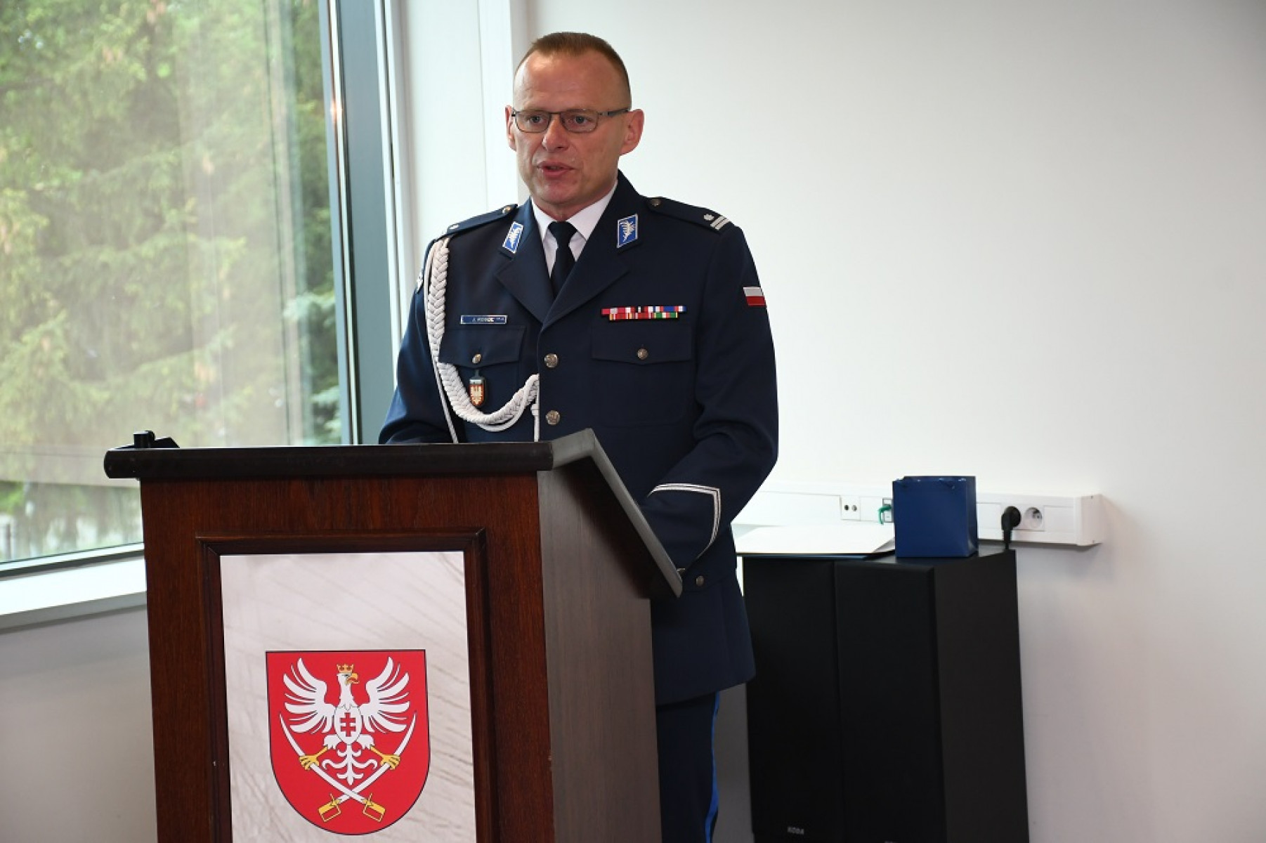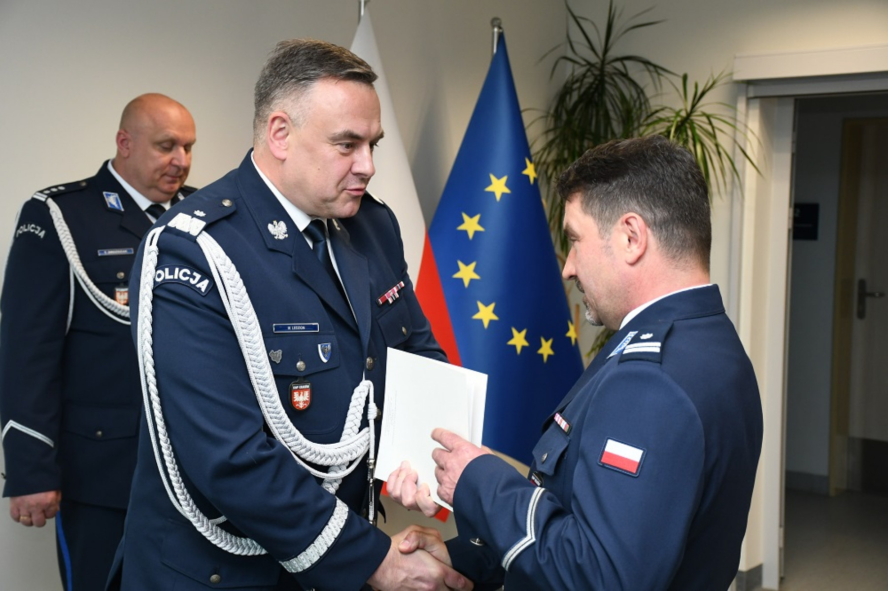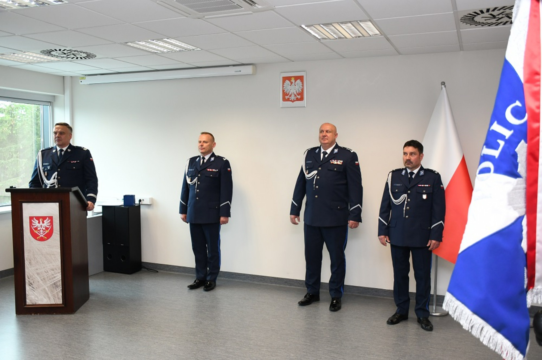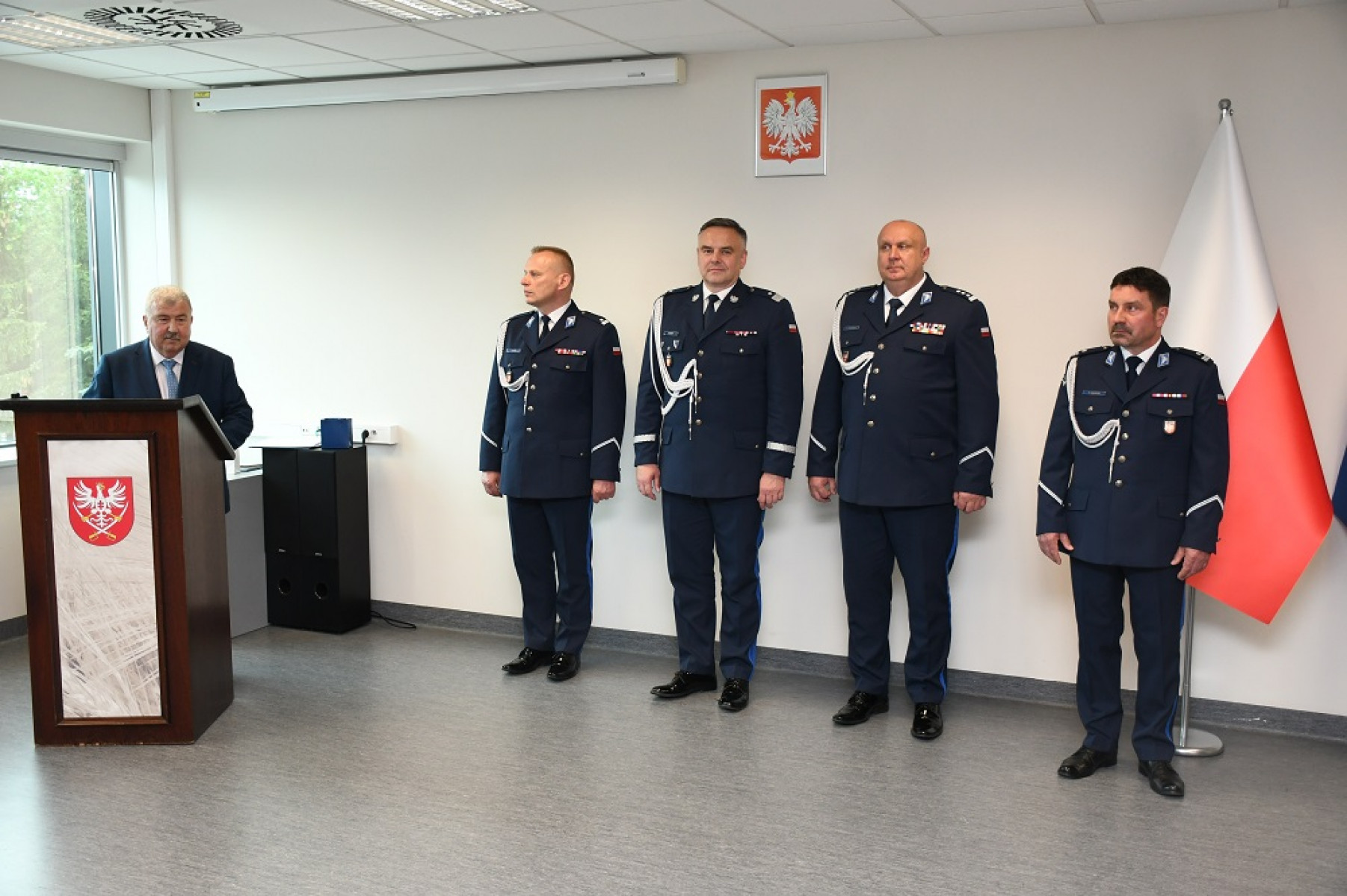 Starosta Miechowski Jacek Kobyłka gratuluje nowym komendantom KPP Miechów