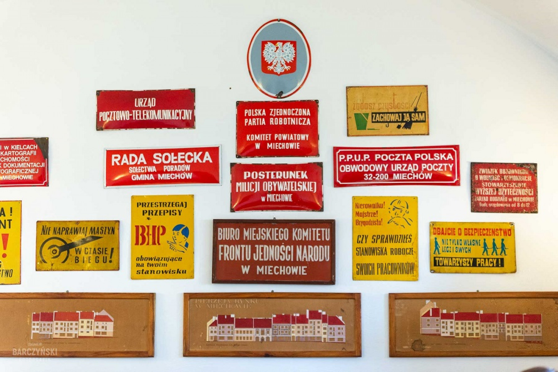 Tablice informacyjne i urzędowe rodem z PRL-u na wystawie w Muzeum Ziemi Miechowskiej