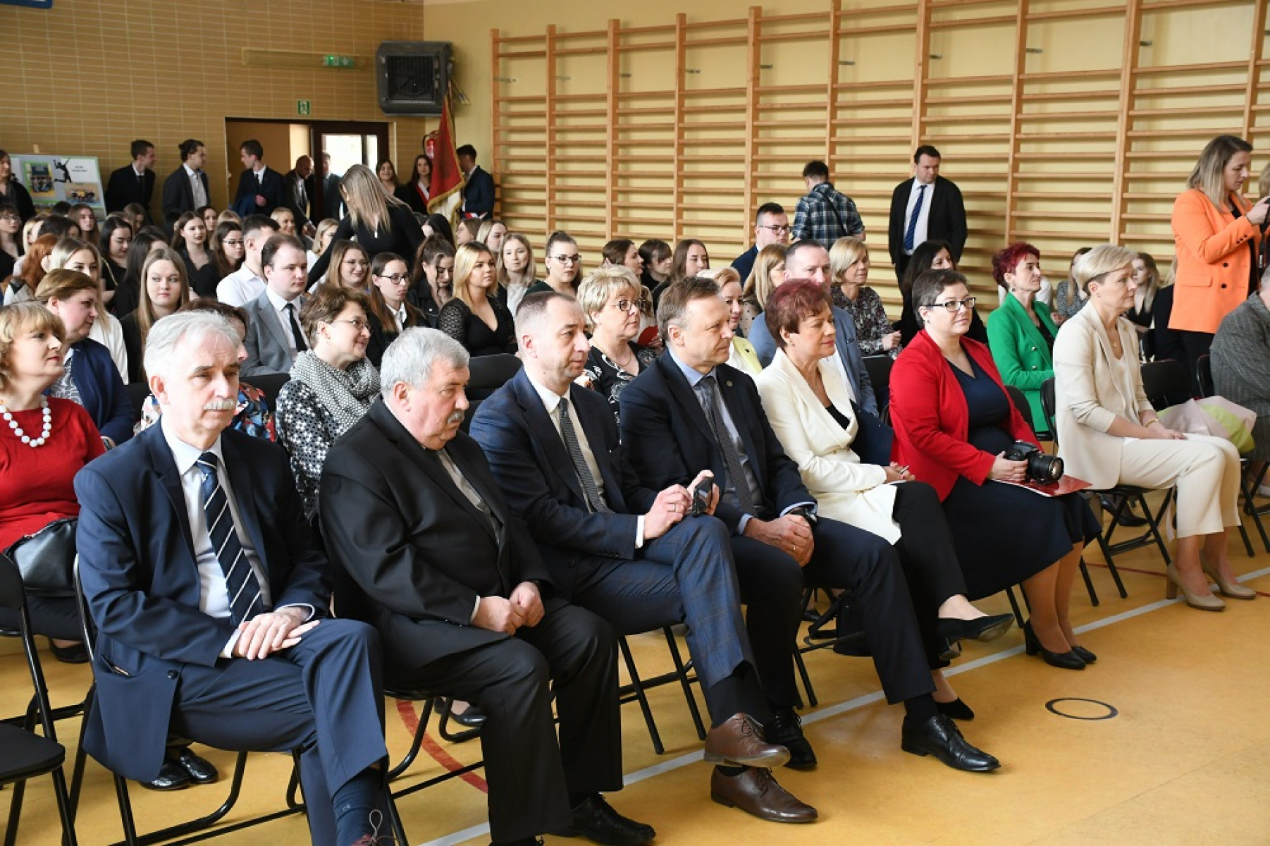 Zarząd Powiatu Miechowskiego, dyrekcja i goście żegnają absolwentów Zespołu Szkół Nr 1 w Miechowie